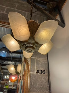 This art deco light slip shache from the 1920s is 5"h x 17"w.