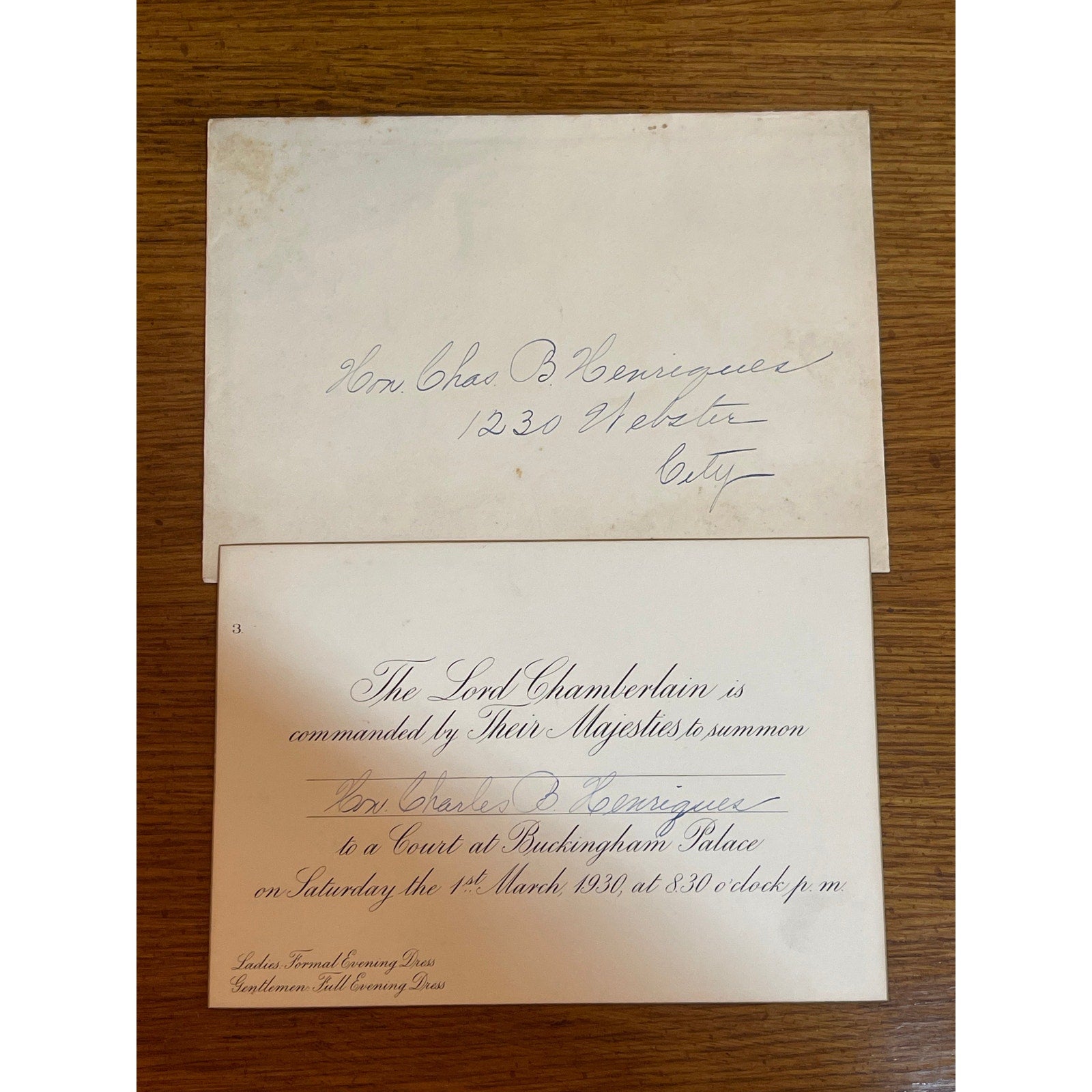 1930 Handwritten Invitation to Buckingham Palace with envelope