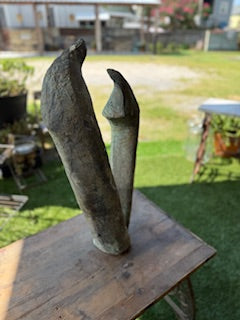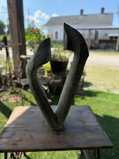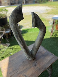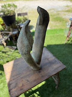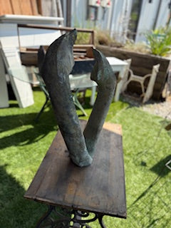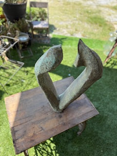 Abstract bronze sculpture ideal focal point for an outdoor garden or landscape. Height - 26.5 inches; Width - 15.5 inches, Depth - 5.5 inches.