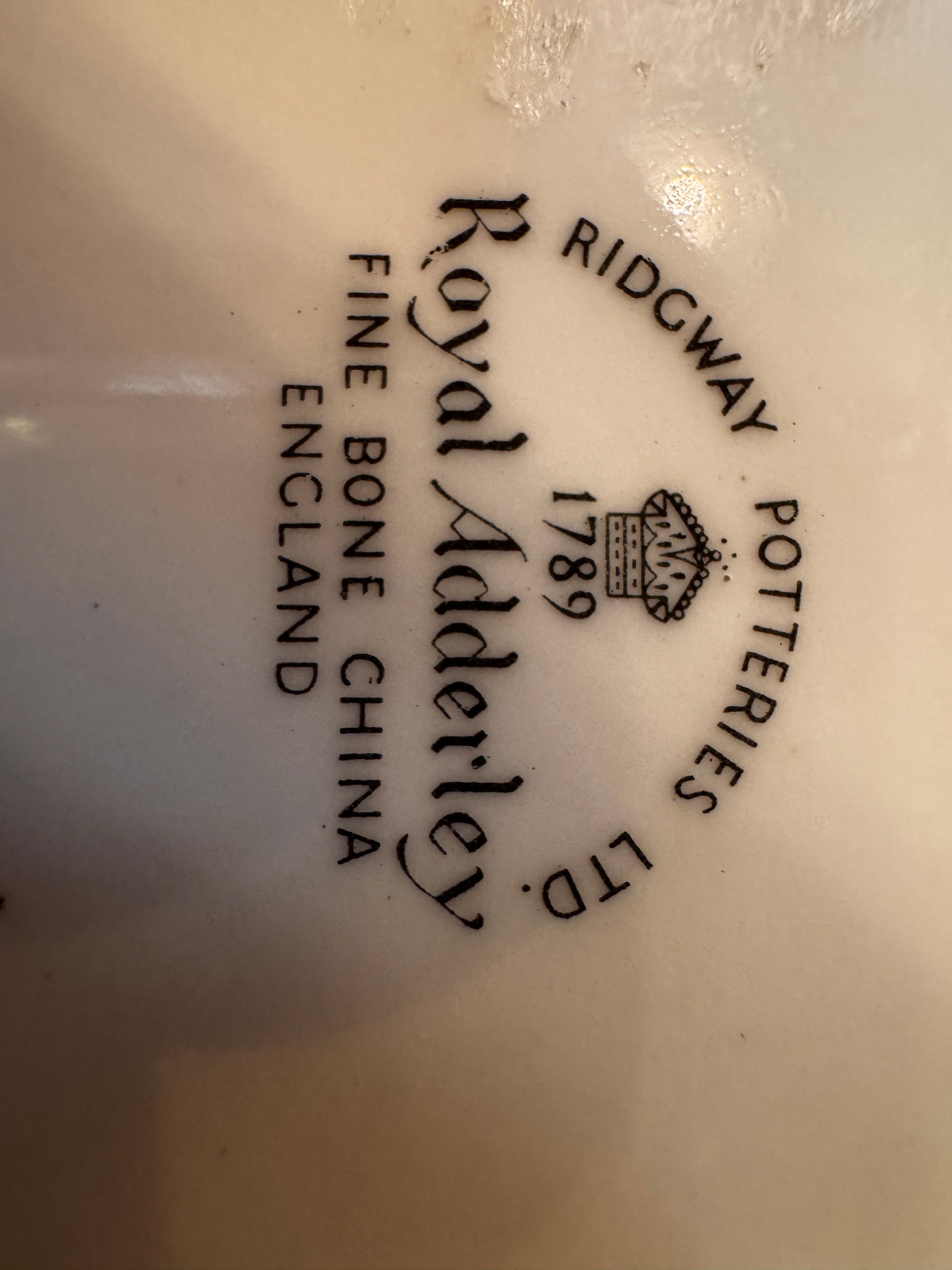 Adderley China was a British pottery company known for producing fine bone china tableware and decorative items. Founded in Longton, Staffordshire, England, in 1876, the company operated for over a century before being acquired by Royal Doulton in 1936. Adderley was particularly renowned for its floral designs, which often featured delicate hand-painted details and vibrant colors.