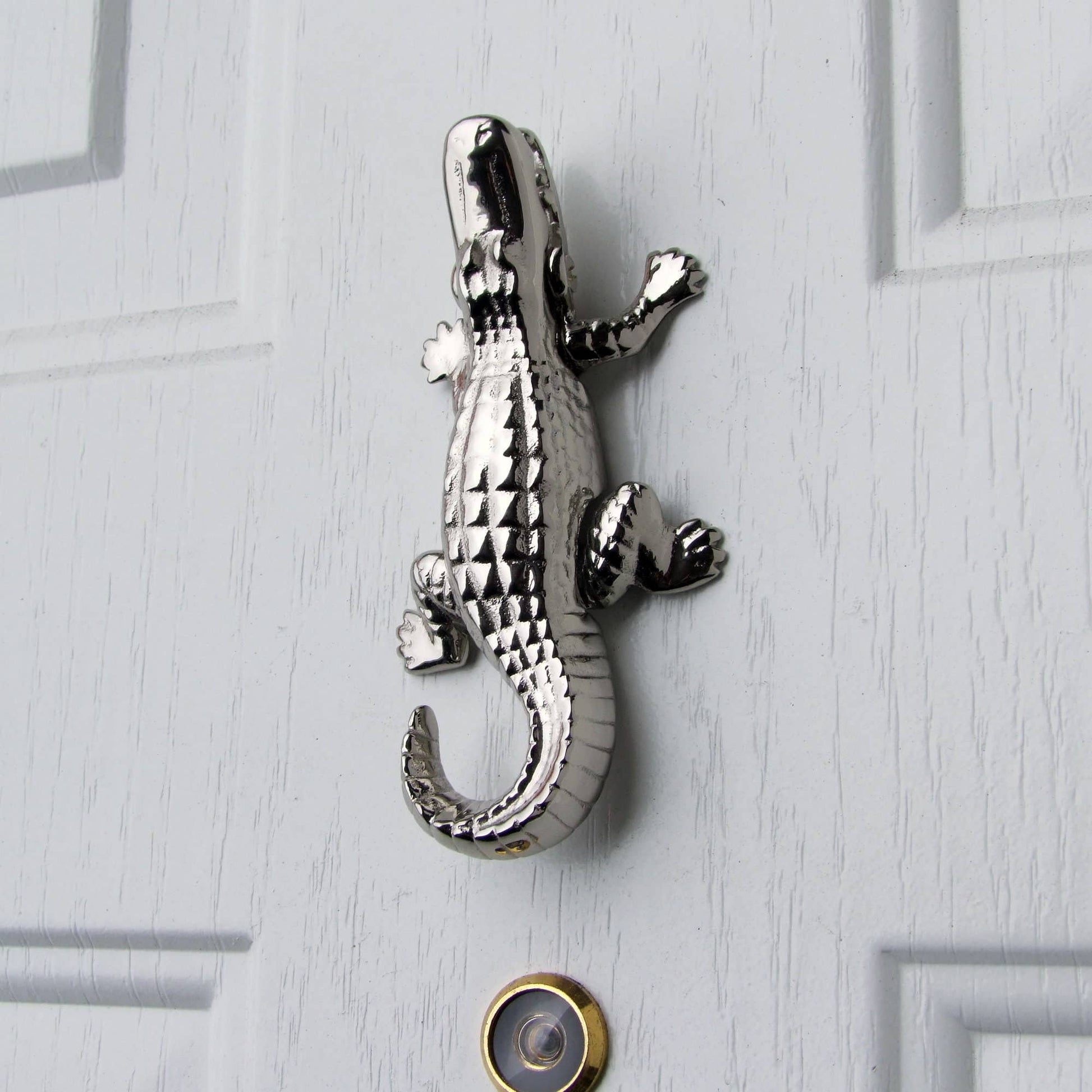 Make a fierce statement and keep your home safely guarded with this Alligator Door Knocker! Alligators have stood the test of time. Powerful, composed, and beautiful design for your home.