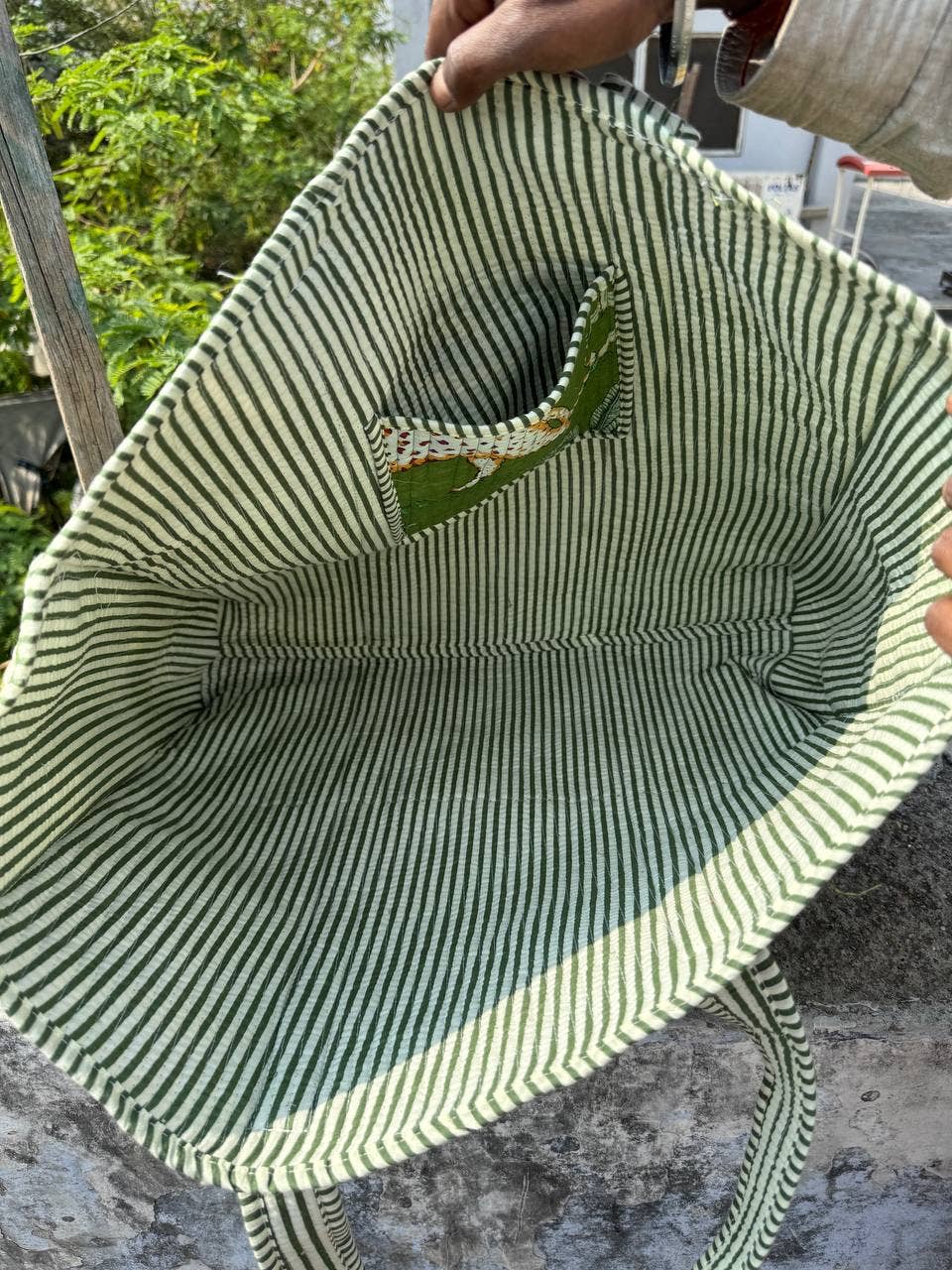 Cotton quilted travel bag made by Indian Artisans, This cotton quilted shopping bag is totally unique and multi purpose. Use this for your grocery or as a travel bag. Perfect to suit everyone.