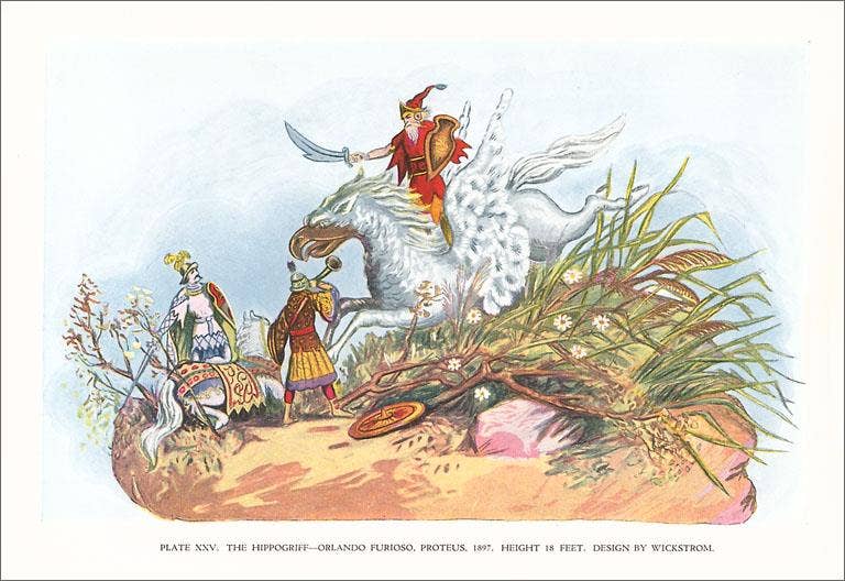 Art Print LU-340 Mardi Gras Float Rendering. This is a Art Print 12.5" x 18" featuring an image from our Lousiana collection titled Mardi Gras Float Rendering. Search keywords: Mistick,Krewe,early,vintage,landscape,horizontal,New,Orleans,parade,Hippogriff,Orlando,Furioso,Proteus,Wickstrom