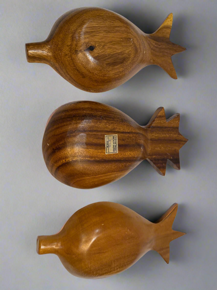 Bring a touch of tropical charm to your table with this set of 3 pineapple-shaped bowls crafted from rich monkey pod wood. These hand-carved beauties were popular in the mid-century era and remain iconic for their natural warmth, sculptural appeal, and playful design.