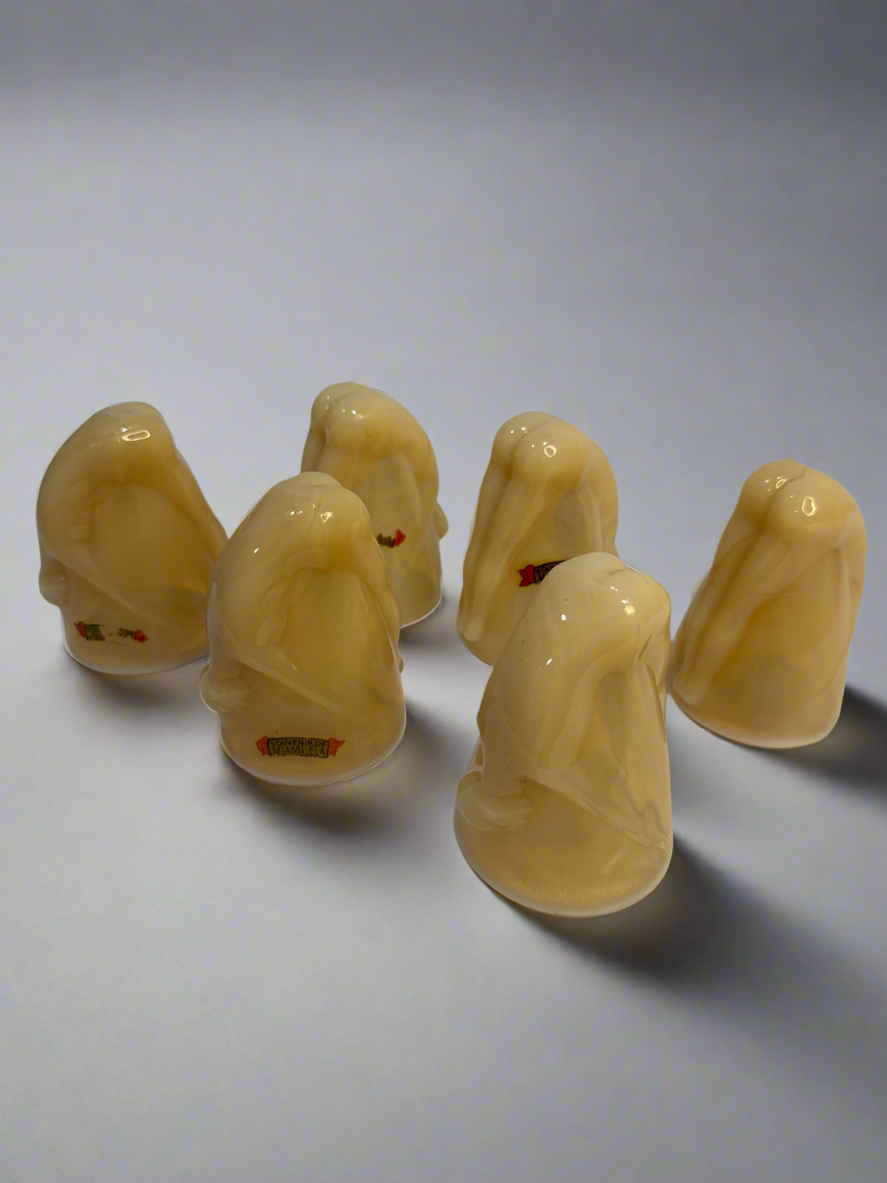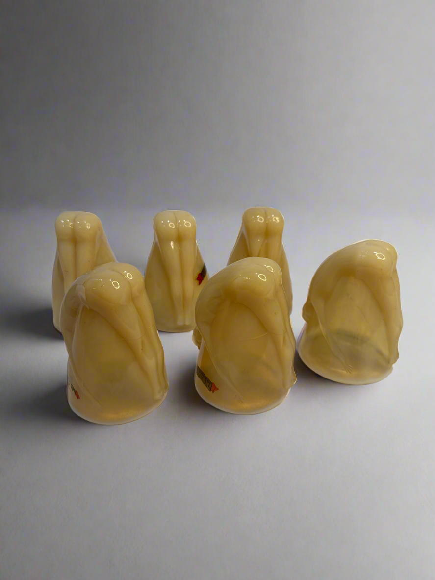 CSRR Bottoms Up! (6) McKee Art Deco Prohibition Era Shot Glasses. Uranium Glass.