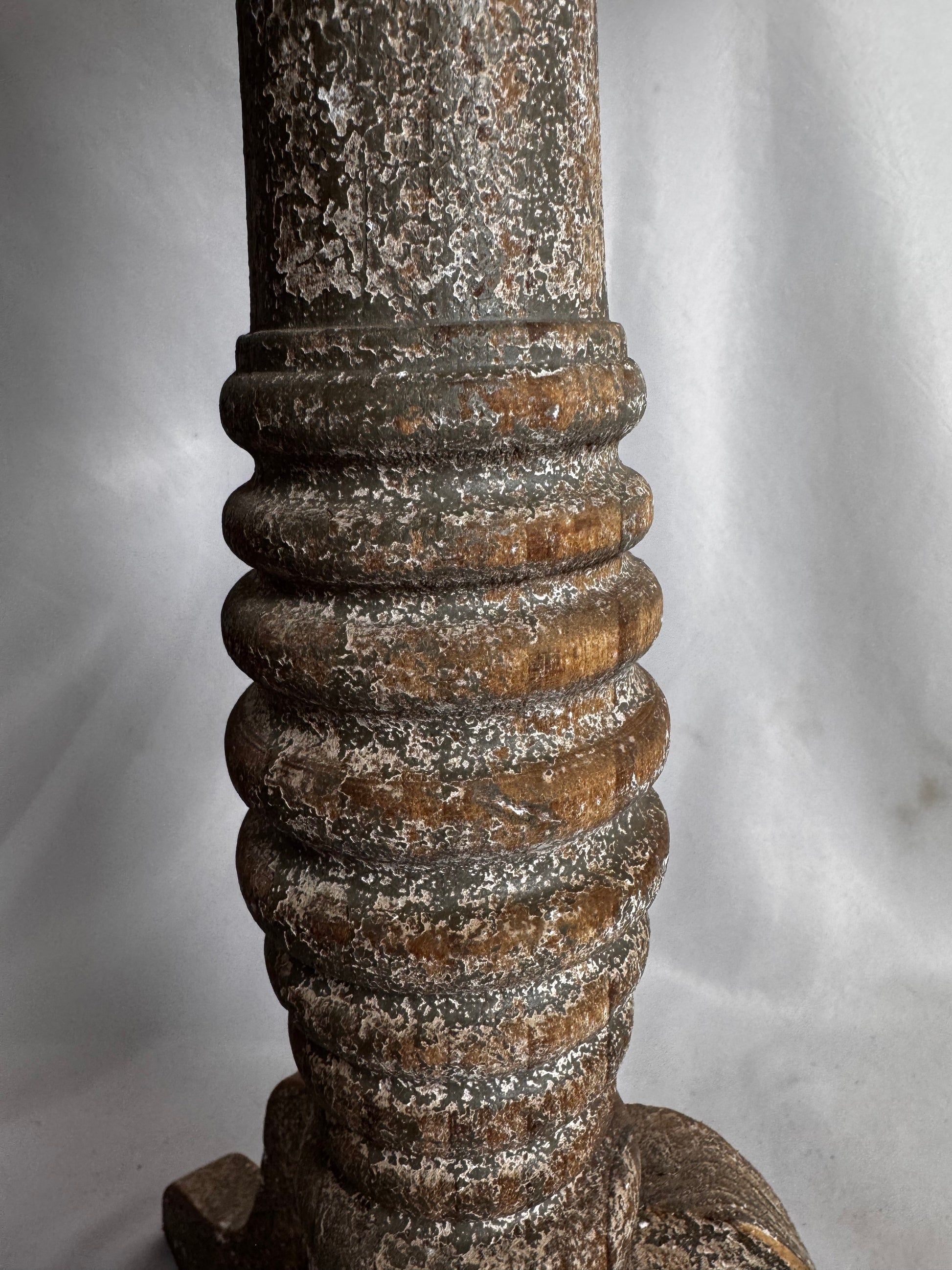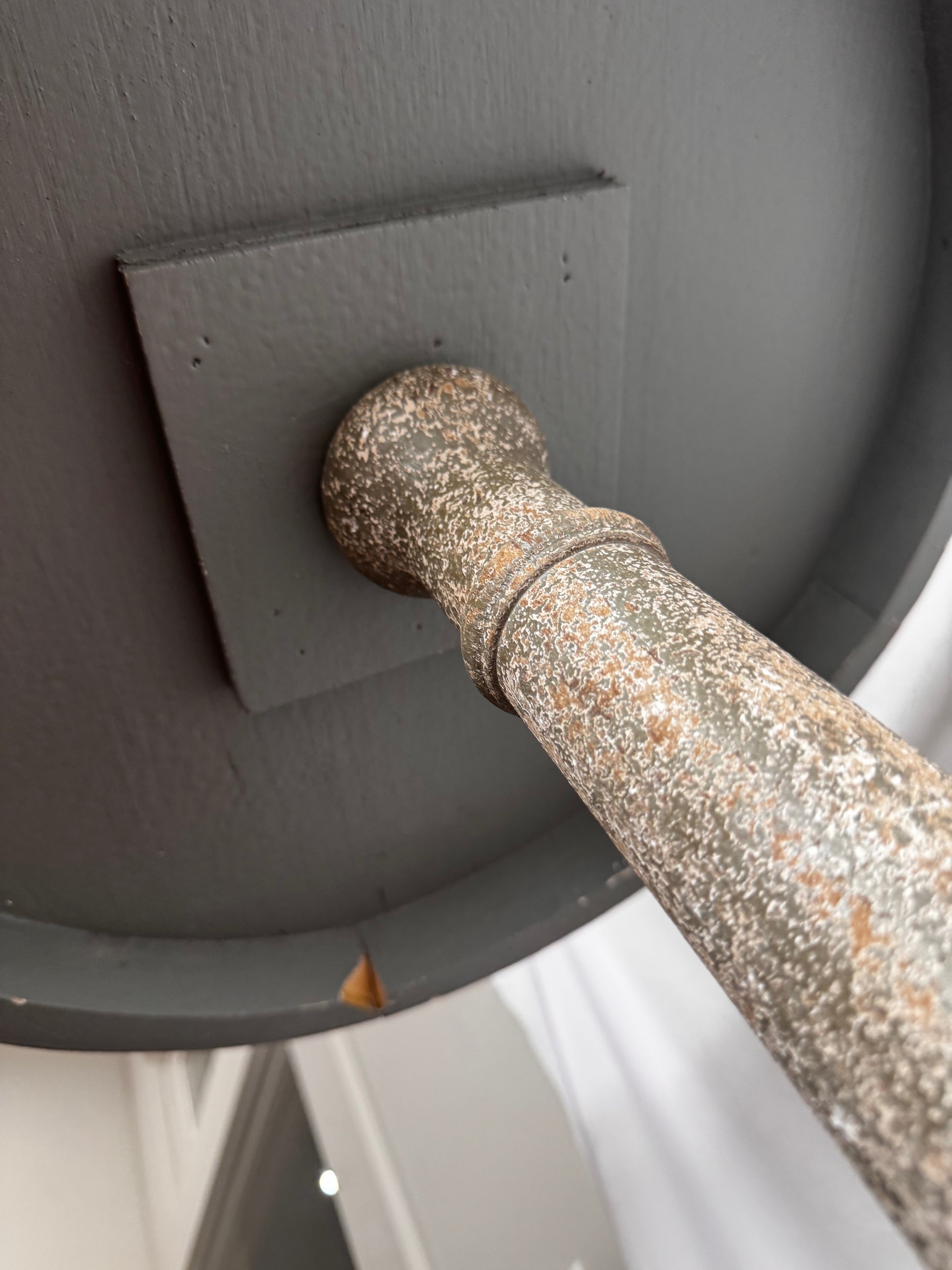 This charming shabby chic pedestal table, with its beautifully distressed finish, is perfect for adding a touch of vintage farmhouse style to any living space.