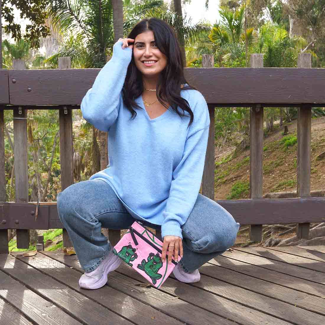 Made from recycled feed bags these zip cases are durable and convenient. So many uses, great travel bags. Perfect to store chargers and cords. Use as a pencil case, money pouch or reusable snack bag too.