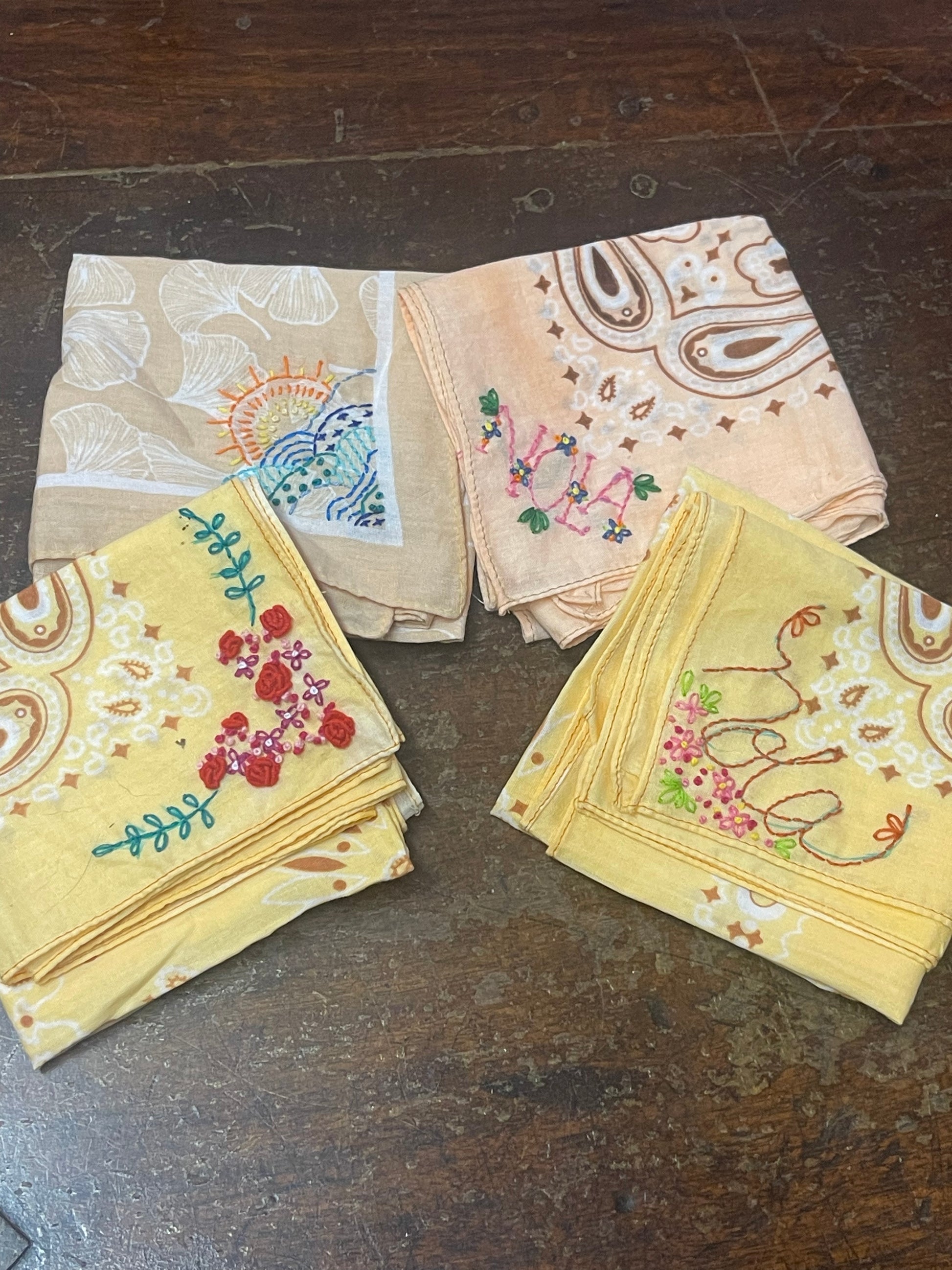 Hand Dyed Hand Embroidered Bandanas
