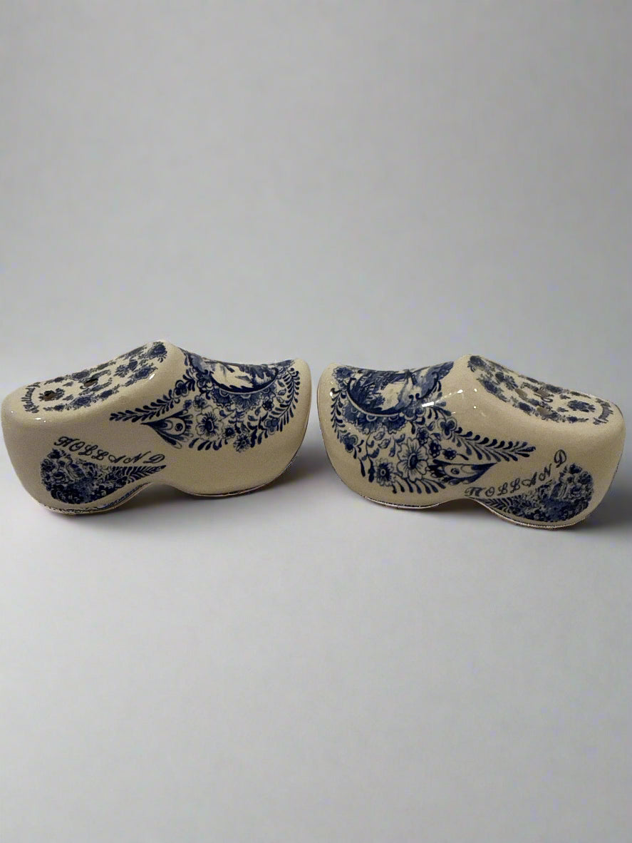 Bring a touch of classic Dutch charm to your table with these hand-painted Delft-like Blue ceramic clogs. Featuring intricate floral and windmill designs, this adorable set doubles as salt and pepper shakers. A perfect gift or collectible for lovers of European decor!