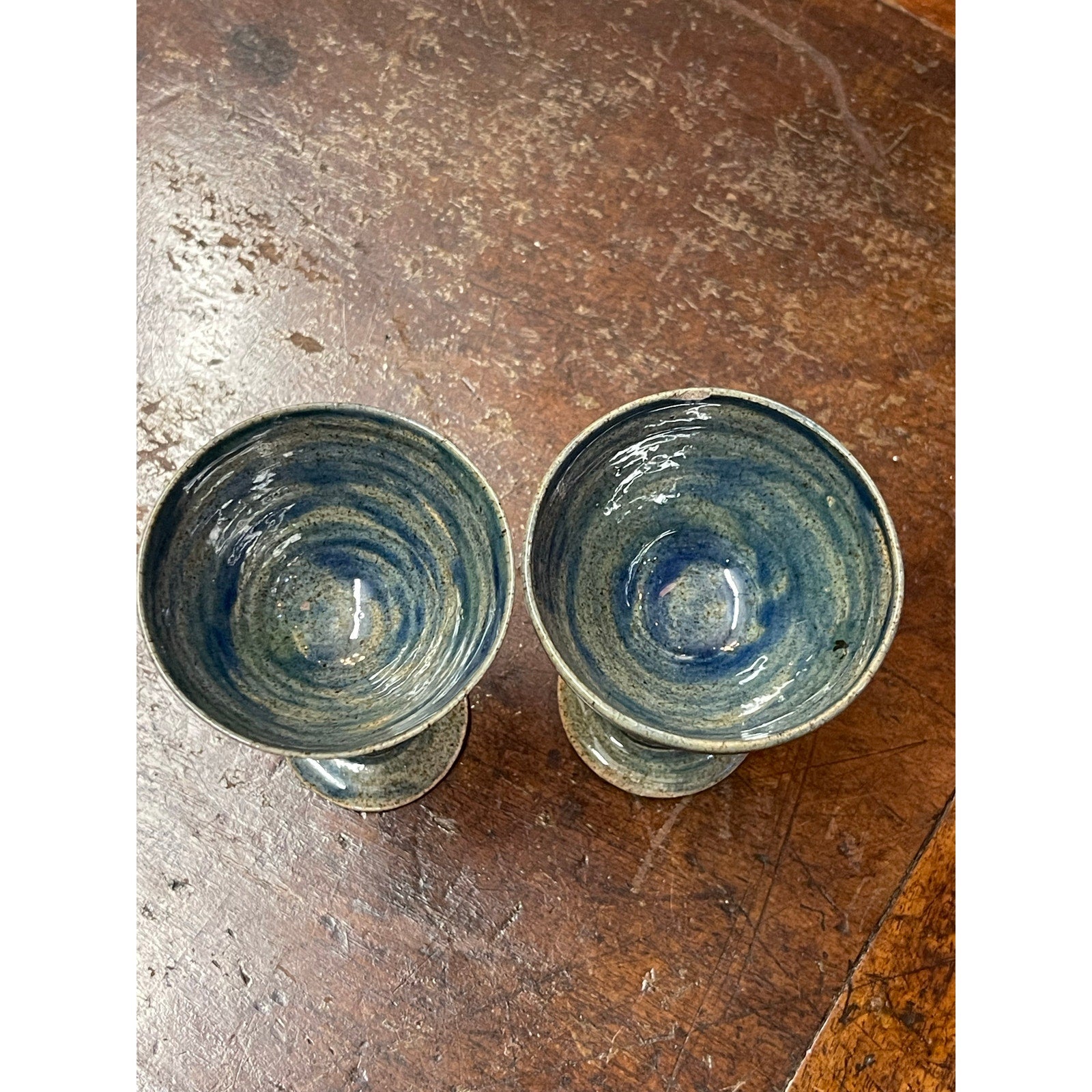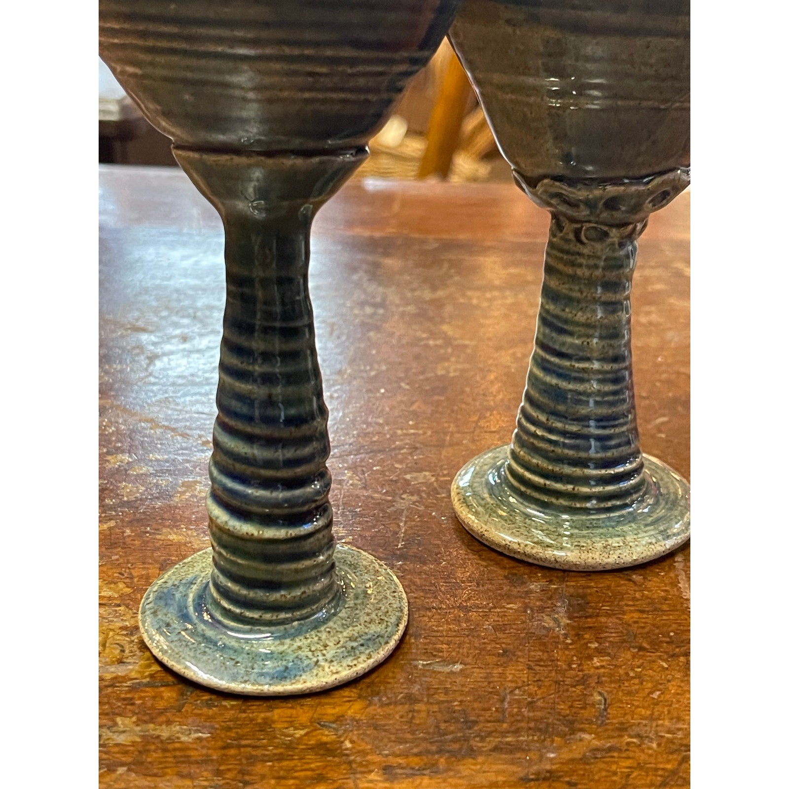 Handmade unsigned Pottery spiral stem goblet chalice cup pair