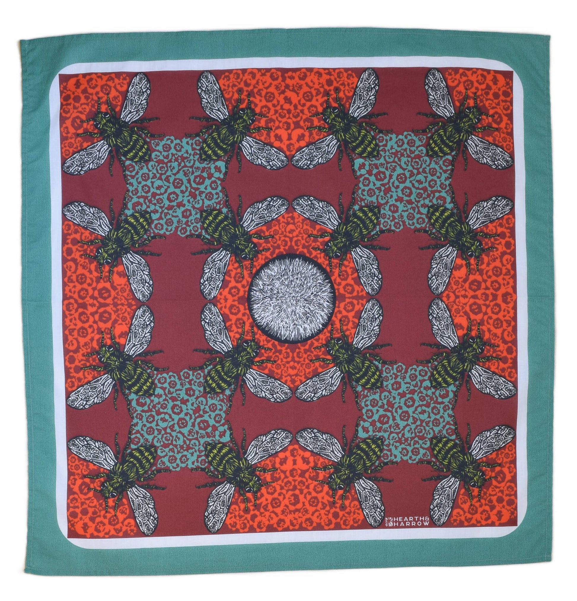 Honeybee Bandana - 100% Cotton - Red and Teal - Hand Printed