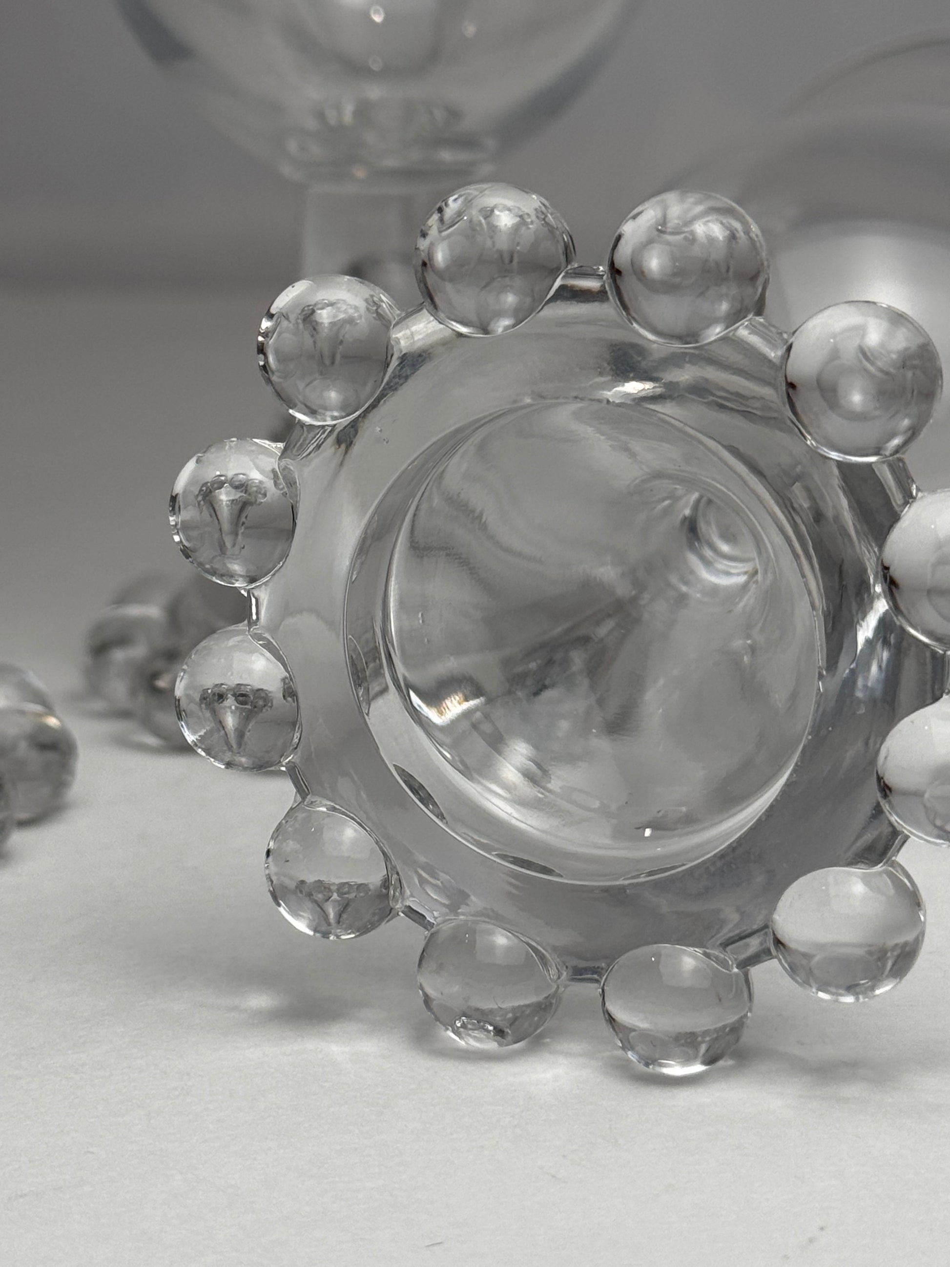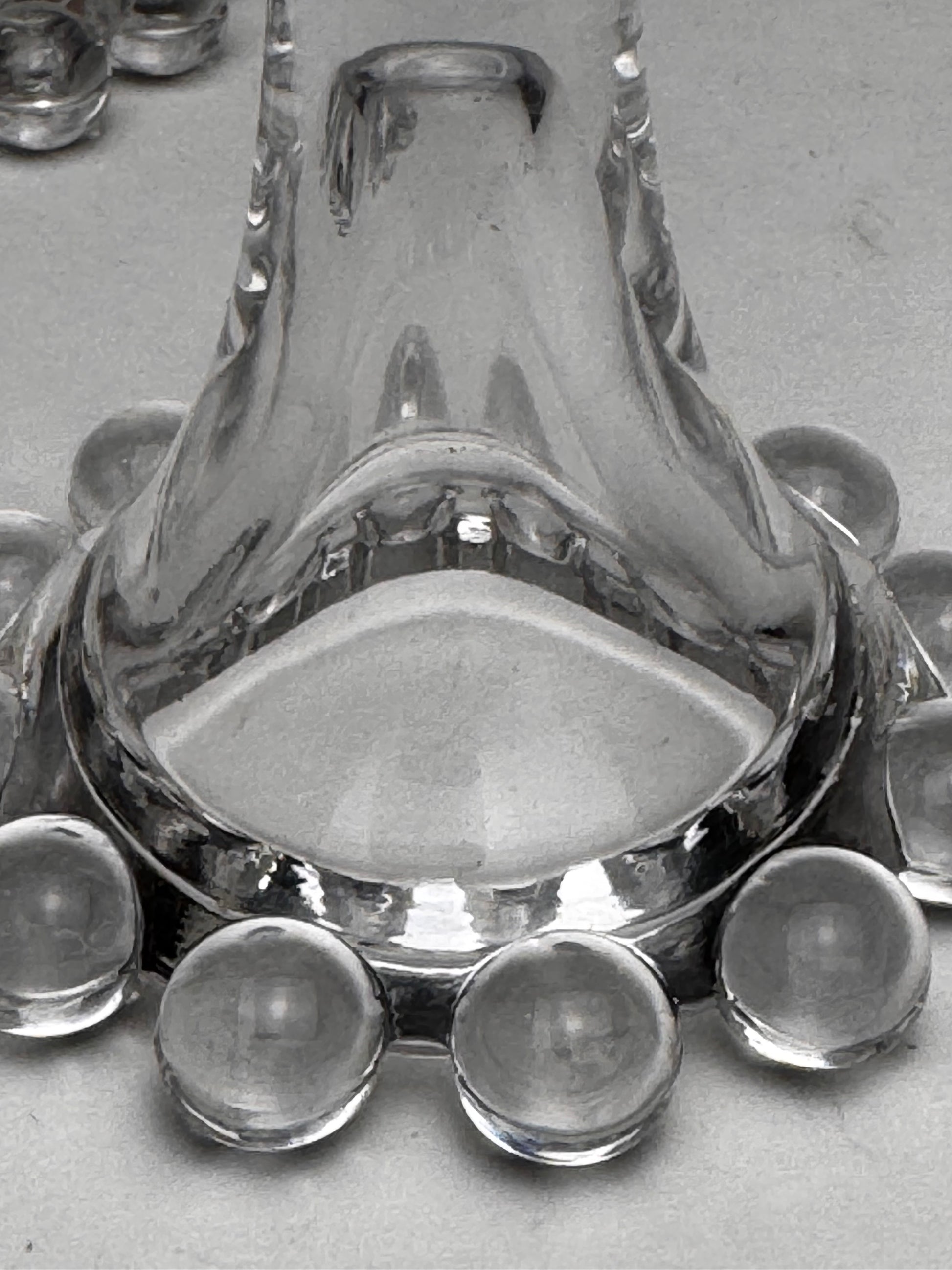 Imperial Glass Company, located in Bellaire, Ohio, produced Candlewick glass from 1936 to 1984. This glassware is characterized by its clear glass and beaded edges, which were inspired by the candlewick embroidery technique. The 'Candlewick' line became one of Imperial's most popular and recognizable patterns.