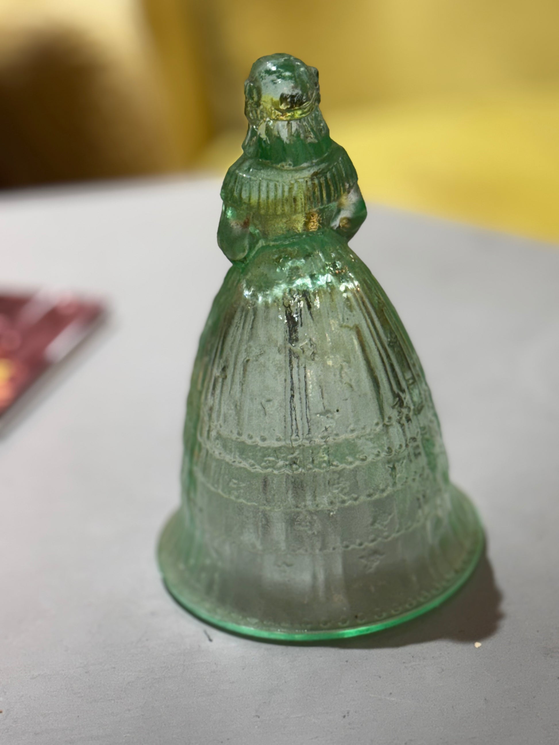 From a cherished family collection with roots in Bellaire, Ohio, comes a truly enchanting piece of Americana: the Imperial Glass "Southern Belle" Bell. Crafted in the heart of Bellaire by the iconic Imperial Glass Company, this bell is not just a decorative accent but a captivating artifact steeped in personal history and charm, a testament to a legacy close to home.