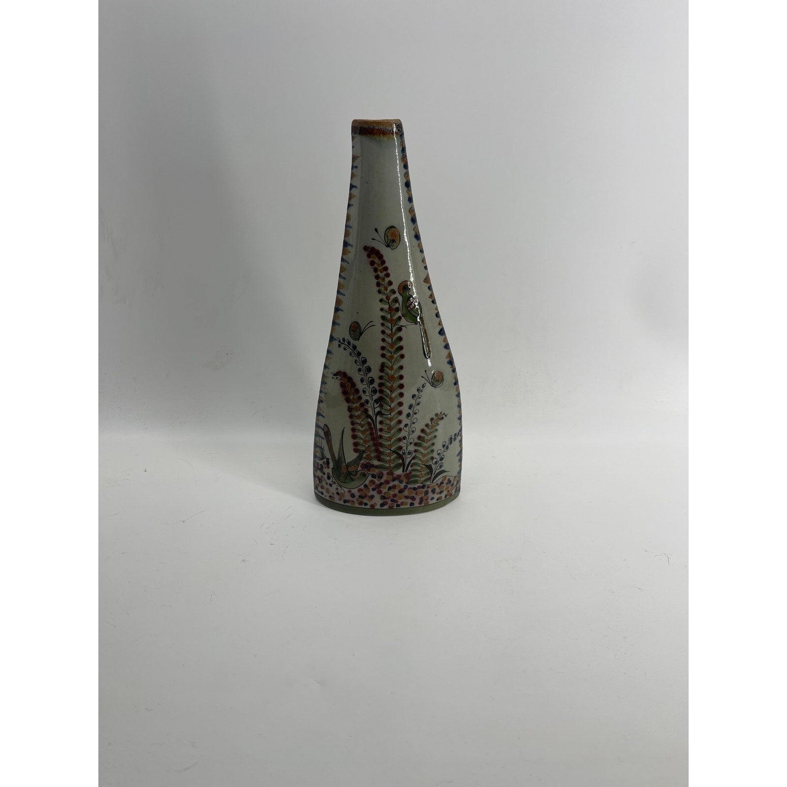 Ken Edwards Tonala El Palomar Mexican Hand Painted Pillow Vase Birds & flowers