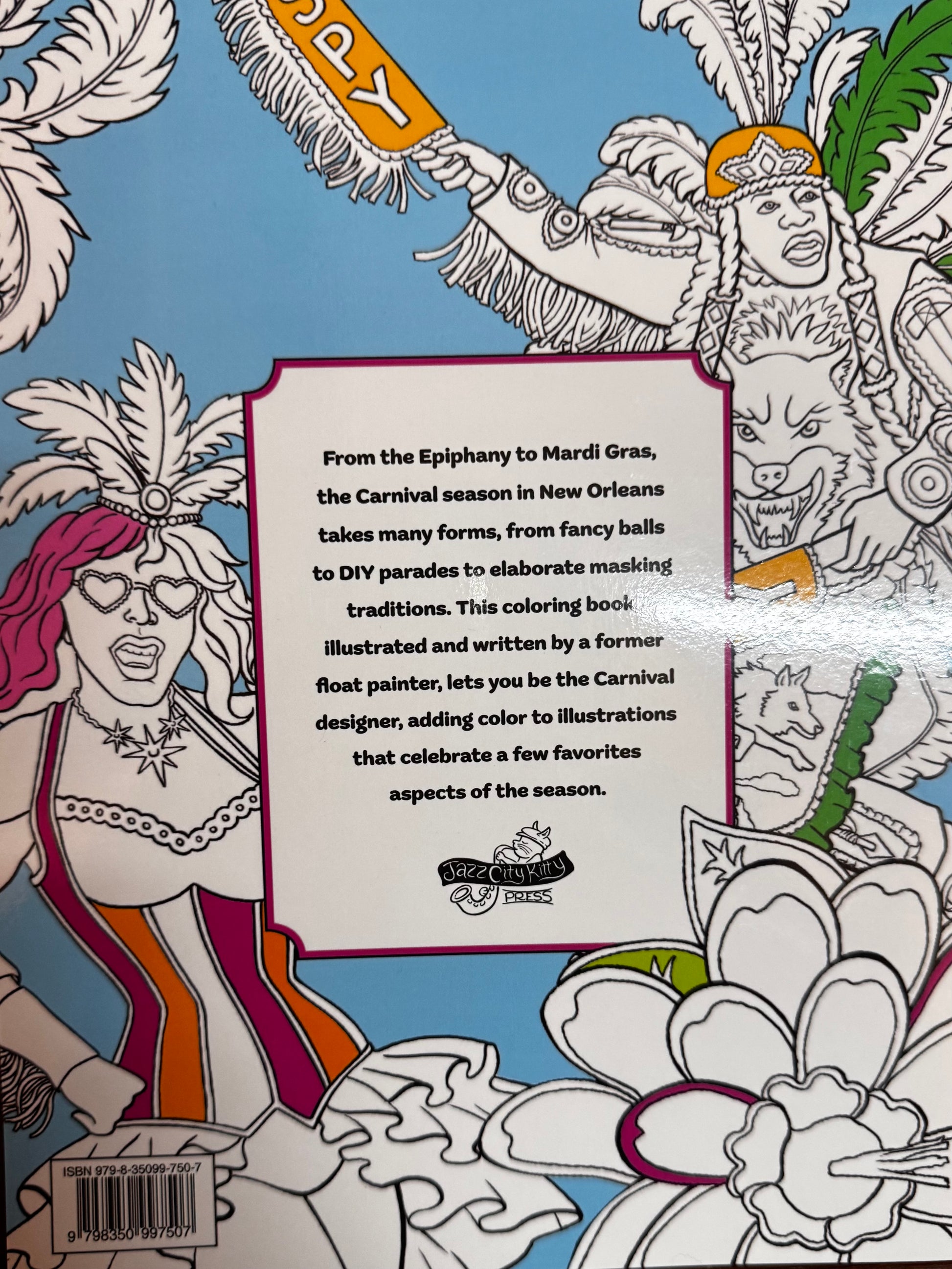 Kings, Queens and Revelers Coloring book. From the Epiphany to Mardi Gras, the Carnival season in New Orleans takes many forms, from fancy balls to DIY parades and elaborate masking traditions. This coloring book, illustrated and written by a former float painter, lets you be the Carnival designer, adding color to illustrations that celebrate a few favorite aspects of the season.