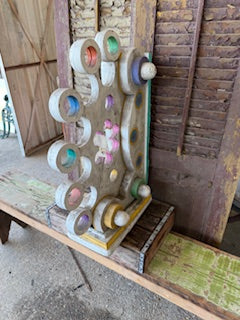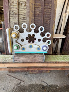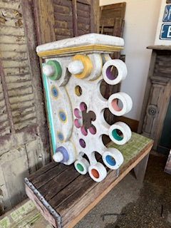 Multi-colored decorative wooden bracket (corbel). Width 4.5 inches; Depth 7 inches; Height 17 inches.
