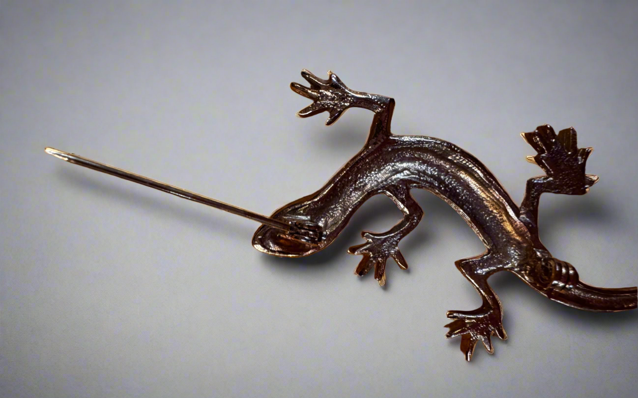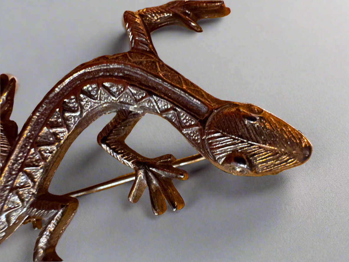 Lizard brooches have been a popular jewelry motif for decades, often symbolizing adaptability and regeneration. These brooches gained prominence in the mid-20th century, with many designers incorporating them into their collections. The use of pewter or silver-tone metals allowed for detailed craftsmanship, capturing the intricate scales and features of the lizard.