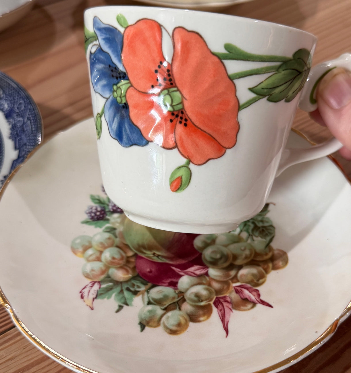 What makes these candles truly special is their unique presentation. We've carefully curated a collection of "interesting" glassware – charming cups and elegant saucers sourced from local thrift stores and garage sales – giving each candle a one-of-a-kind personality. You can even mix and match your favorite cup with a complementary saucer to create a truly bespoke piece!