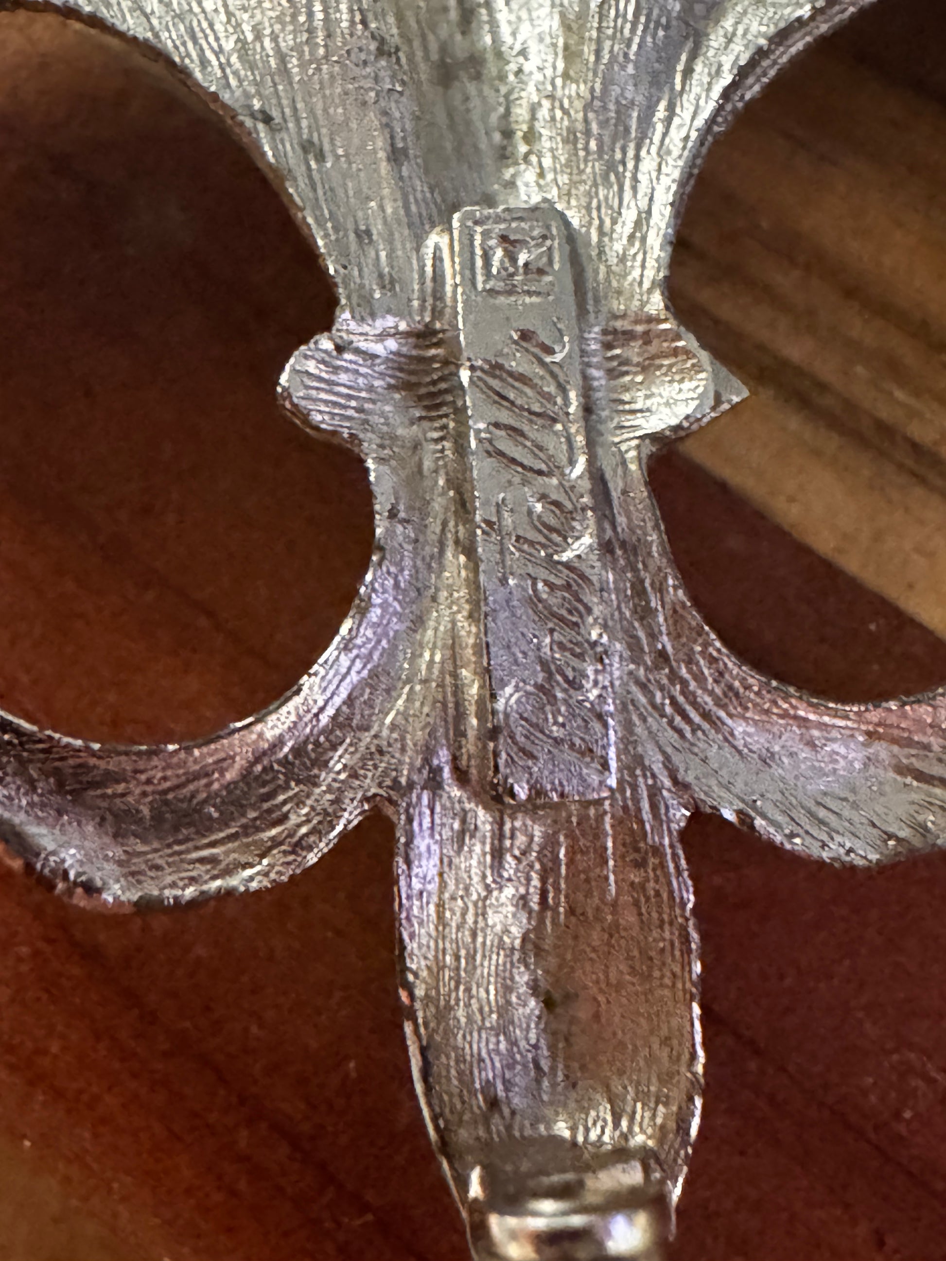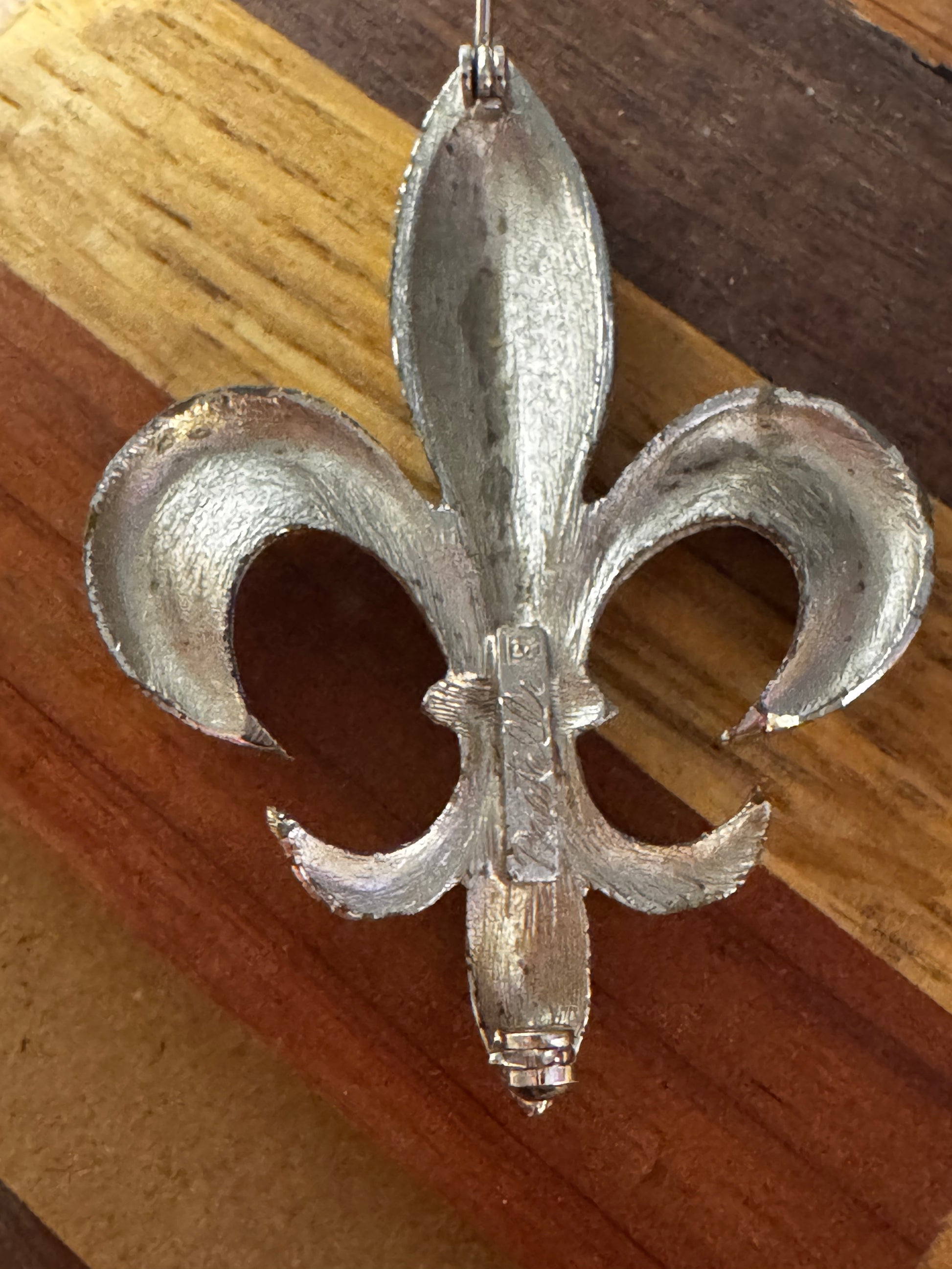 The Monet fleur-de-lis brooch represents a commendable example of vintage costume jewelry from a highly respected American brand. Its authentic signature, durable triple-plated silver-tone finish, and timeless design contribute significantly to its aesthetic appeal and established collectibility.