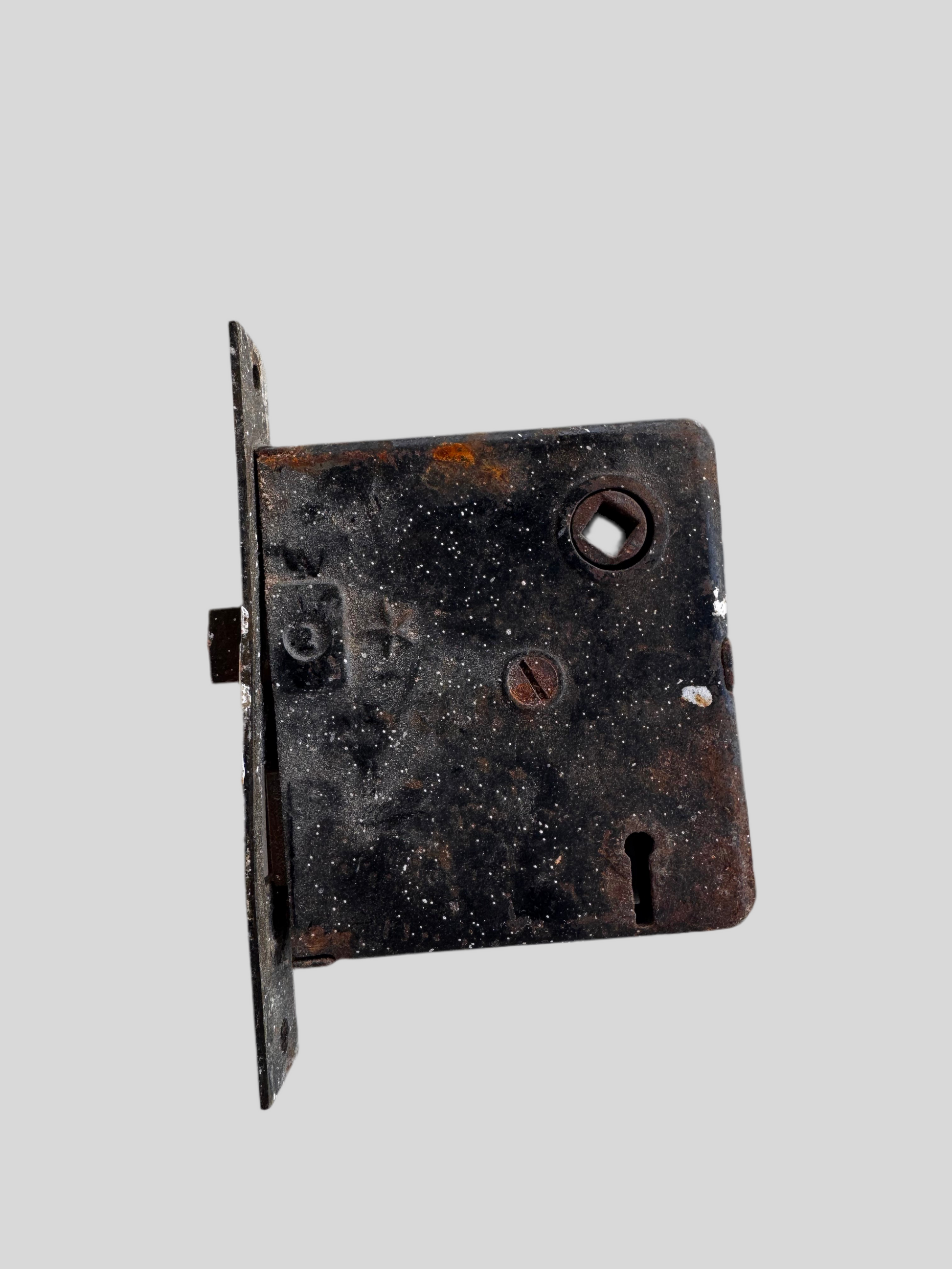 Mortise door lock. Mortise locks are installed into a rectangular pocket (mortise) cut into the door's edge. Key not included