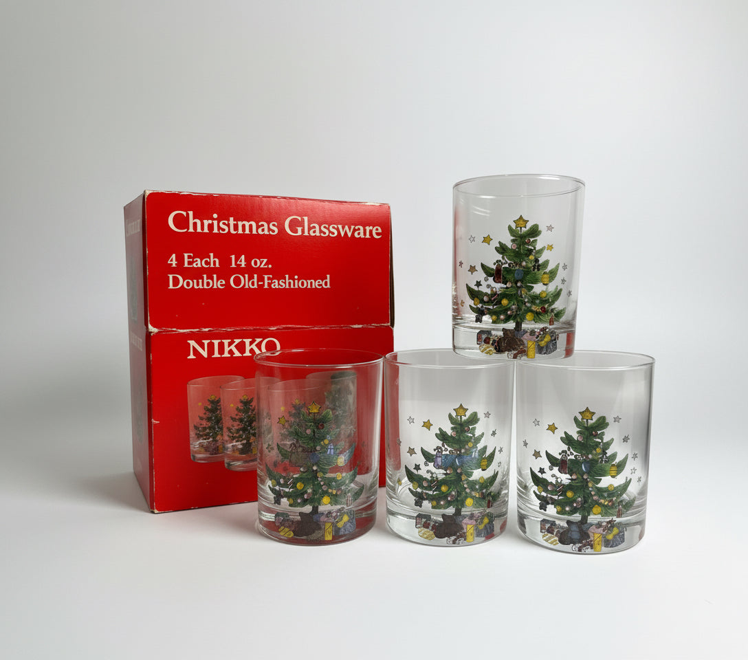 The "Happy Holidays" collection, which includes this glassware, is a popular line that evokes nostalgia and festive cheer, often featuring classic Christmas imagery. These items were typically produced in the late 20th century and are sought after by collectors for their charming designs and association with holiday traditions.