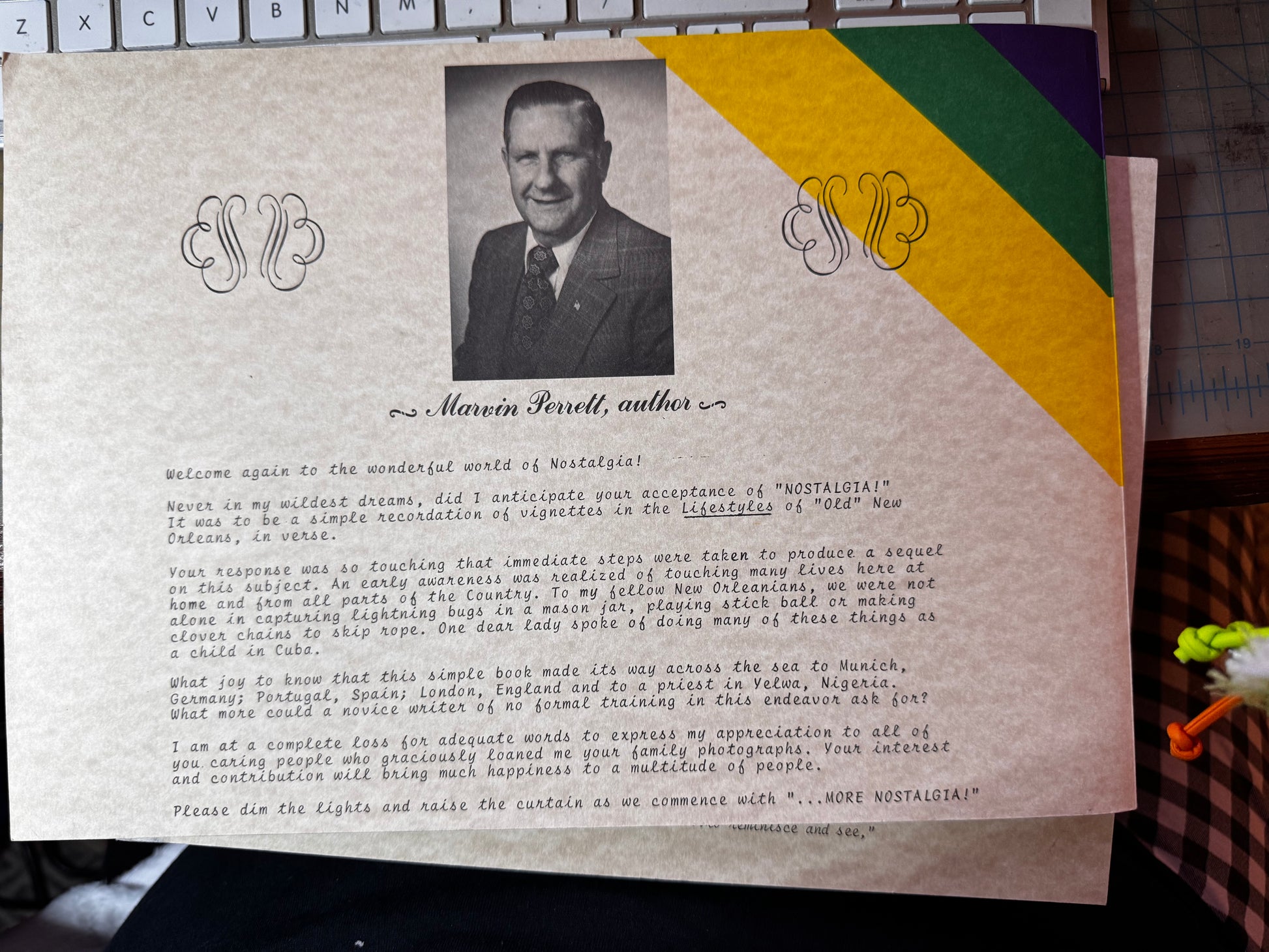 Capture the spirit of "Old" New Orleans with this rare, two-volume set of local history and poetry by beloved Louisiana author Marvin J. Perrett. This desirable pair of softcover books, published in 1982 and 1983, serves as a time capsule featuring vignettes, photos, and poems about the city's golden era.
