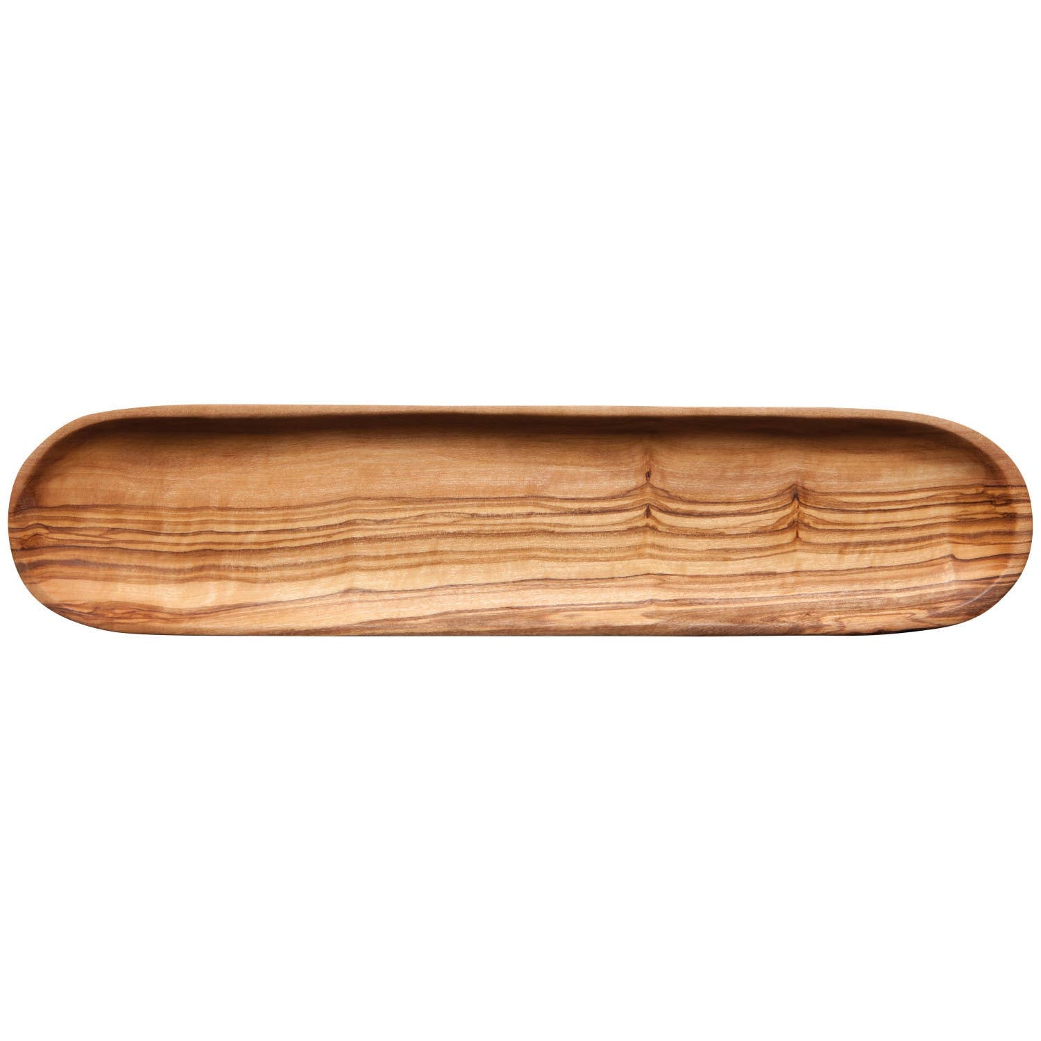 Dense in texture and rich in tone, this Olive Wood tray brings warmth and enduring appeal of the olive grove to the home. This tray is handcrafted, richly grained, and made from sustainable olive wood from branches that no longer bear fruit. Dimensions: W3 x L14in