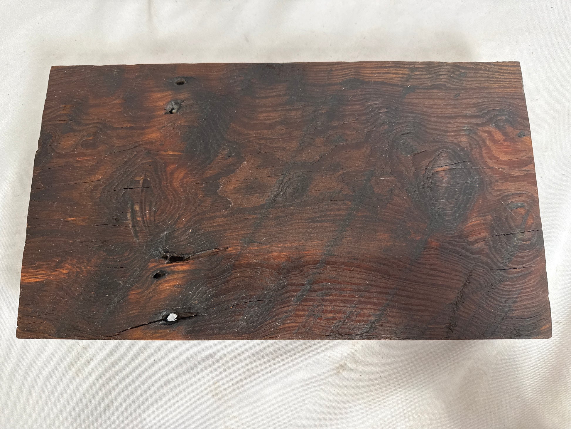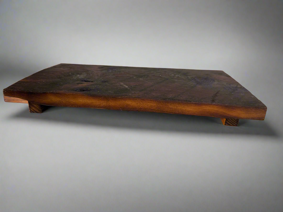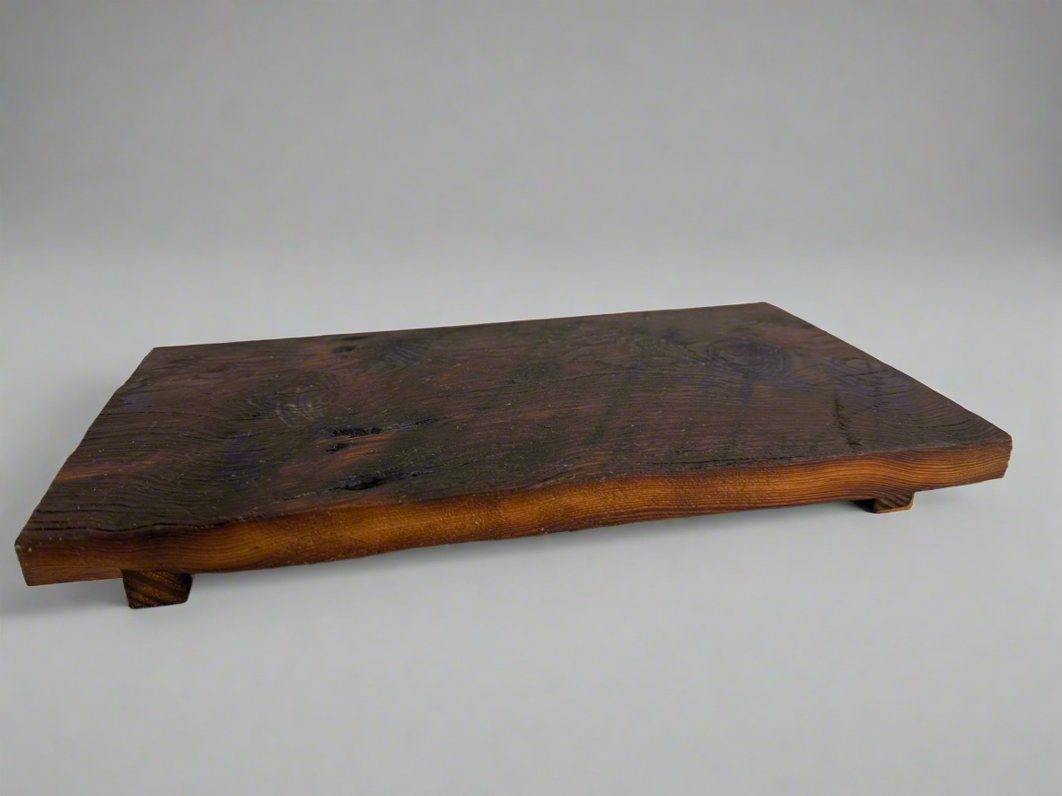 This Original BargeBoard Counter Pedestal is handcrafted from reclaimed bargeboard salvaged from 19th-century flatboats used to transport goods down the Mississippi River to New Orleans. It is made from old-growth cypress or pine with natural grain and imperfections. The pedestal measures approximately [insert dimensions if known, e.g., 14” x 8” and stands on four short, tapered feet for stability and airflow. It can be used to display items such as candles, plants, soap dispensers, kitchen utensils, or decorative accents on bathroom vanities, kitchen counters, or coffee bars. The piece is sealed with a protective finish for cleaning.