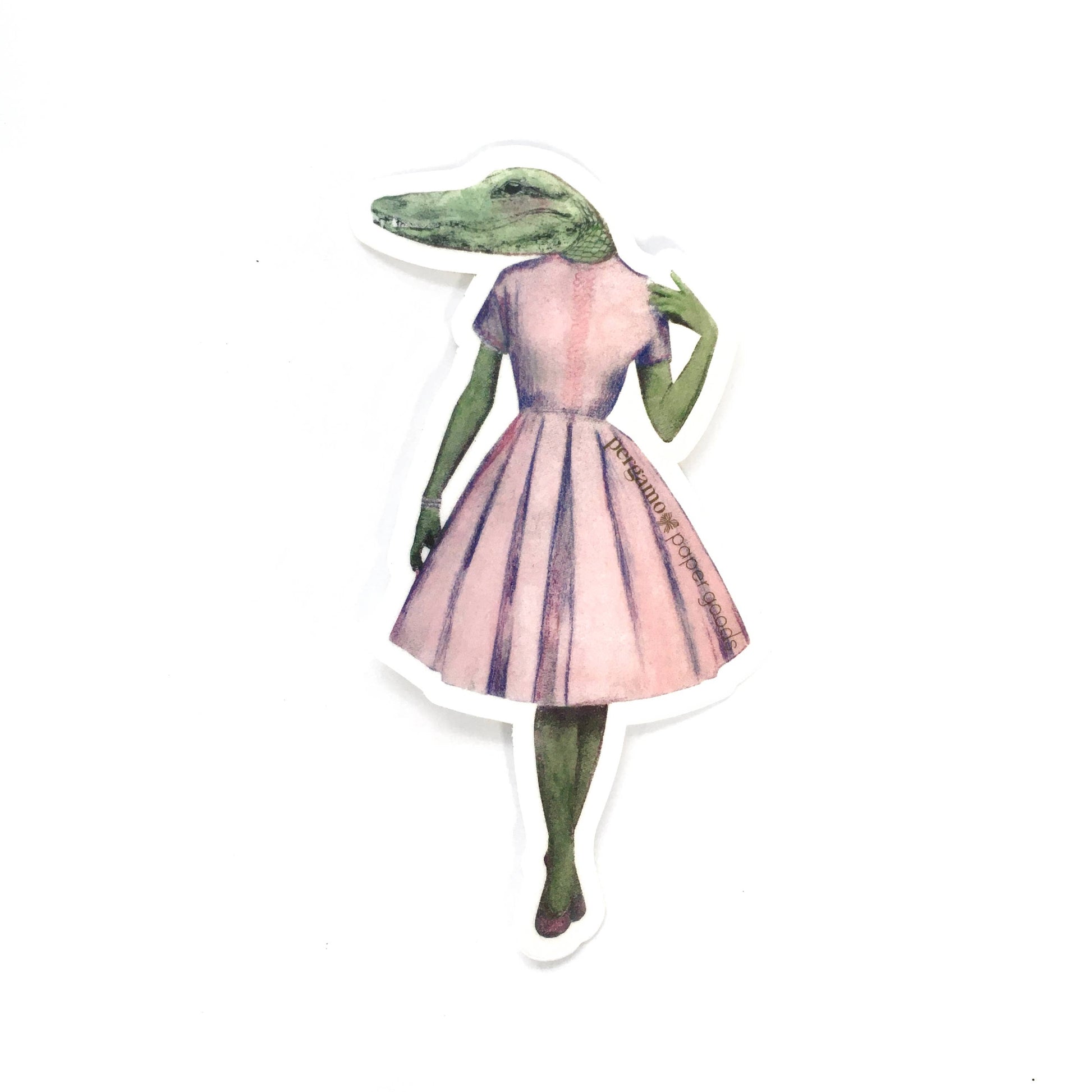 Pink Dress Alligator Lady Illustrated Animal Vinyl Sticker