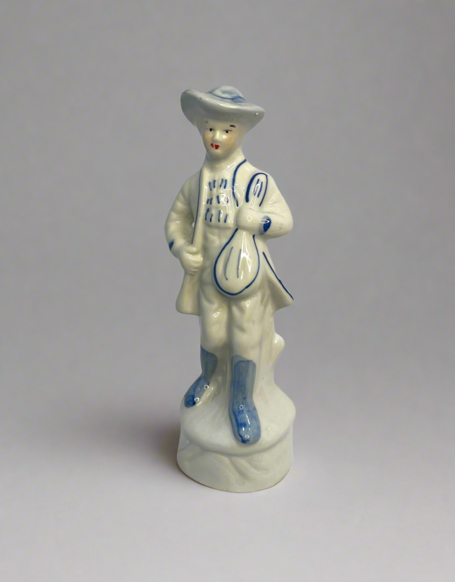 Porcelain Cobalt Blue And White Colonial Man With A Mandolin