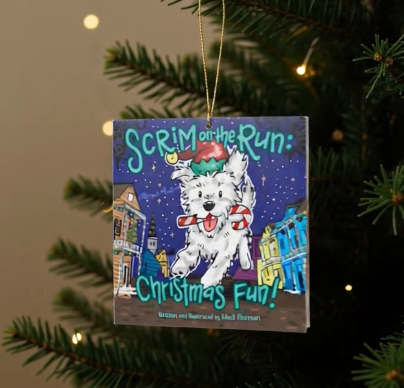 This miniature book of Scrim on the Run: Christmas Fun! to hang on your tree tells the true story of a scraggly little white terrier named Scrim that captured the hearts of New Orleanians when he was on the run in the city for many months; he even jumped out of a second story window after he was apprehended! A portion of all book sales will be donated by the author to local animal rescues and animal welfare organizations.
