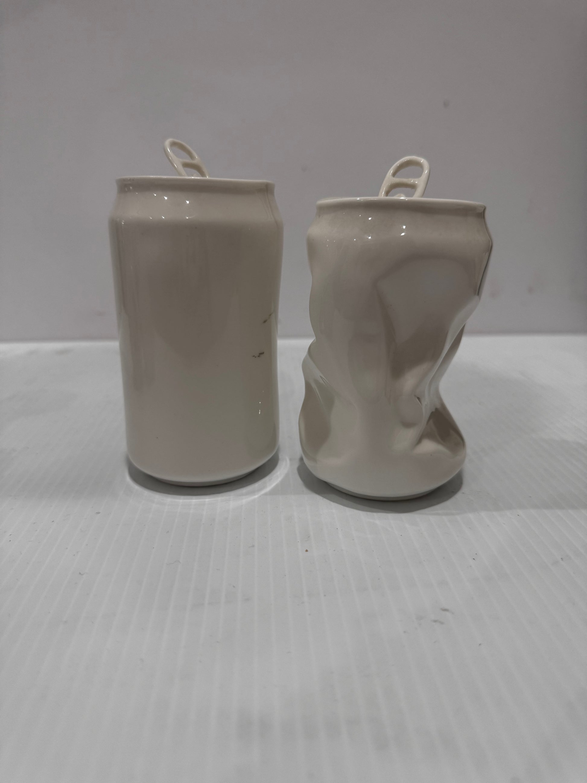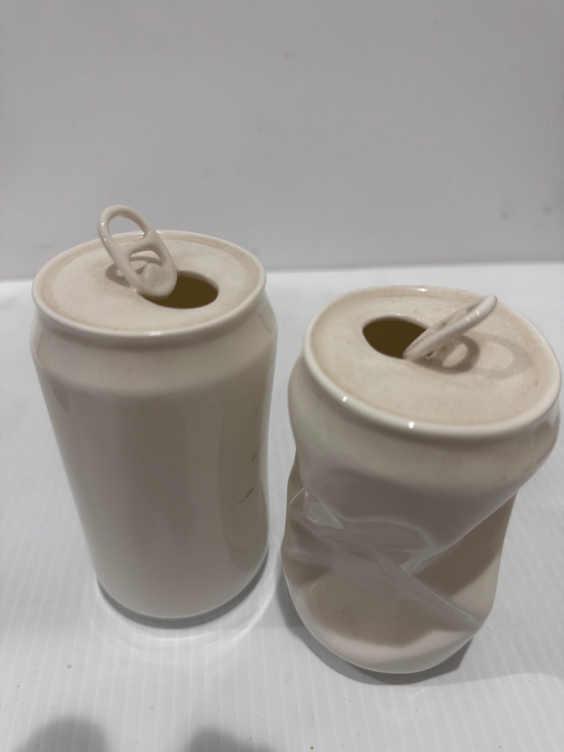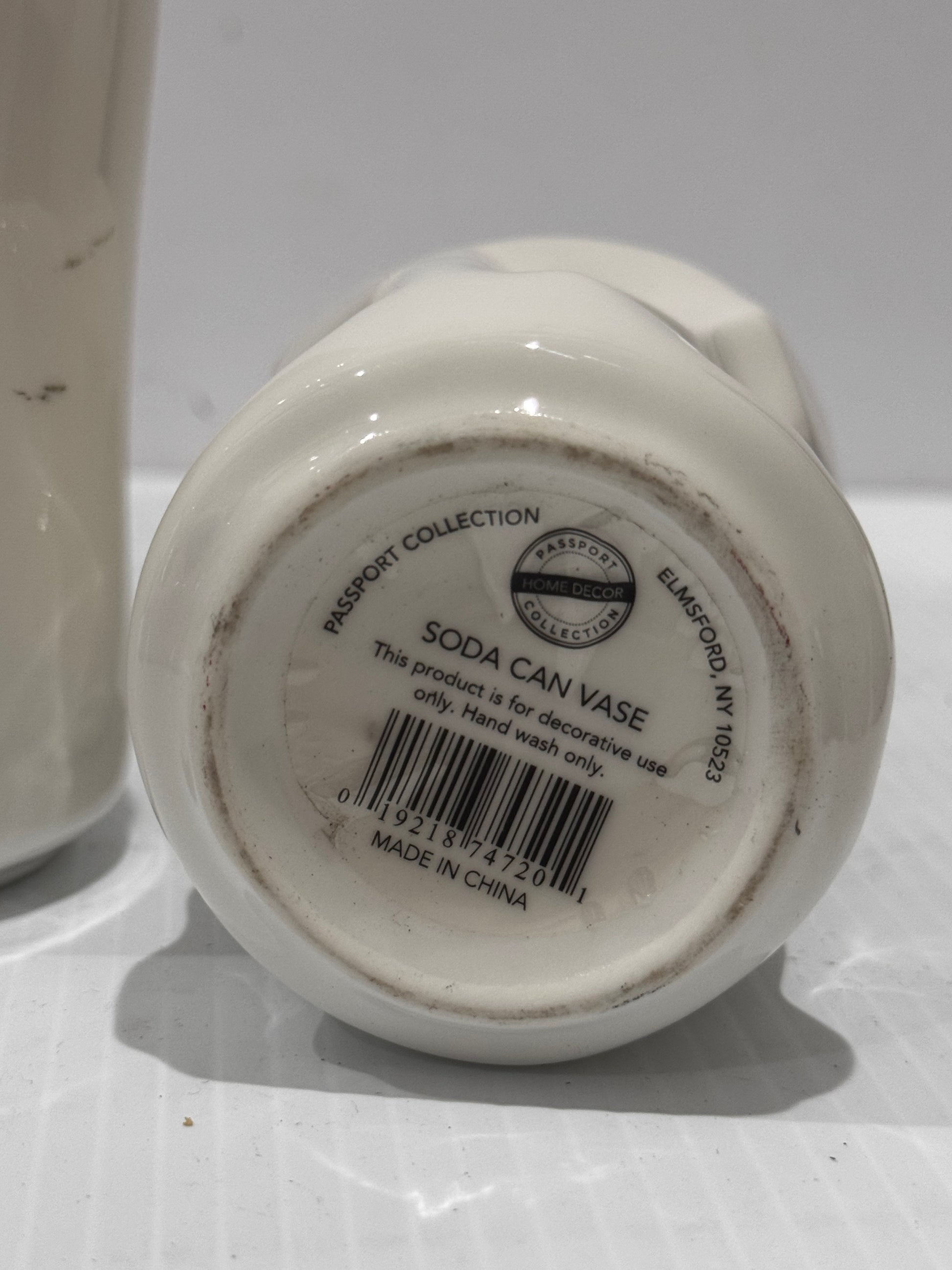 These unique "Passport Collection" ceramic vases ingeniously transform everyday soda cans into captivating decorative art. Available in both a sleek, uncrushed form and a playfully "crushed" design, these white ceramic pieces offer a distinctive, pop-art inspired aesthetic for any modern interior Crafted in China for decorative use only, they bring a touch of whimsical charm and contemporary flair to your home.
