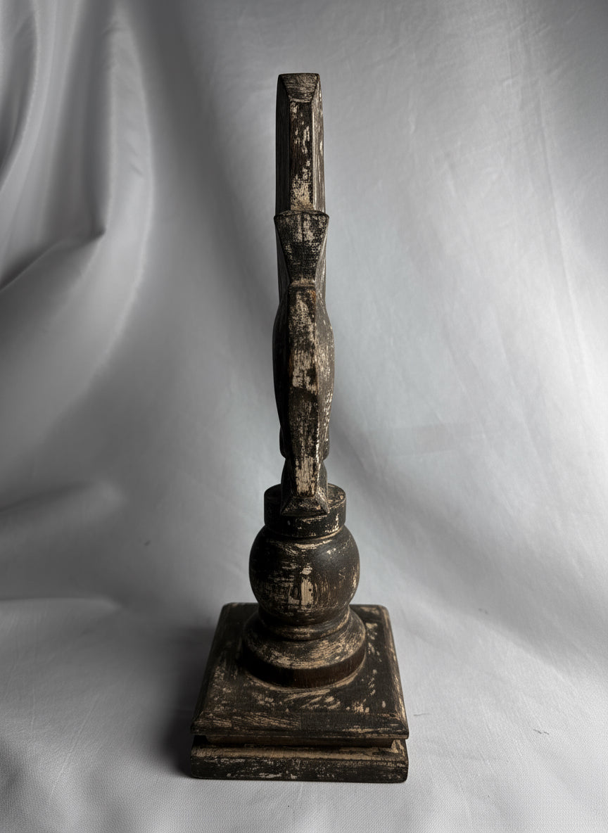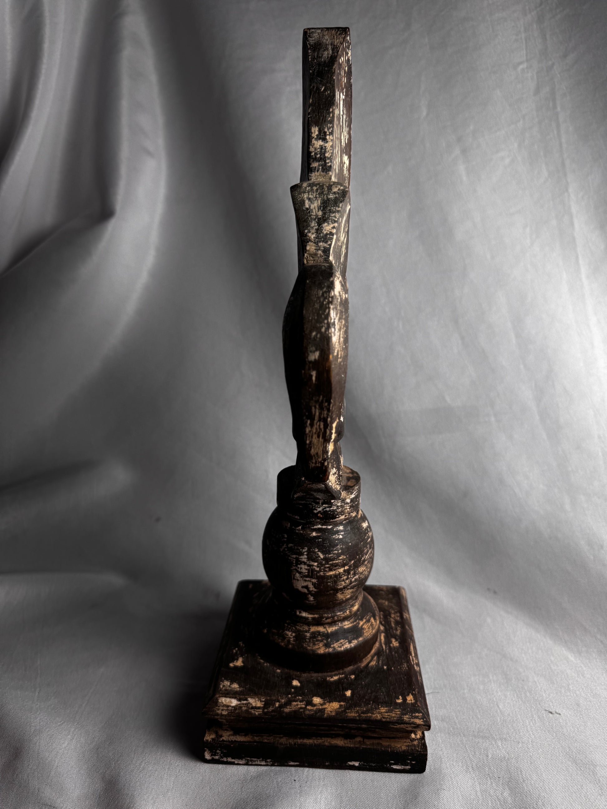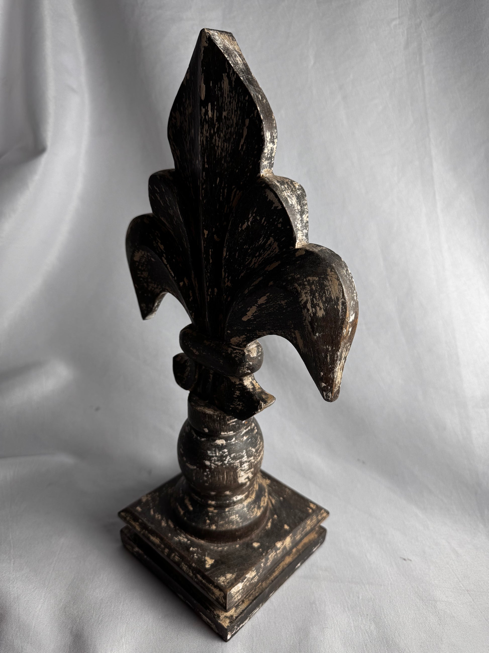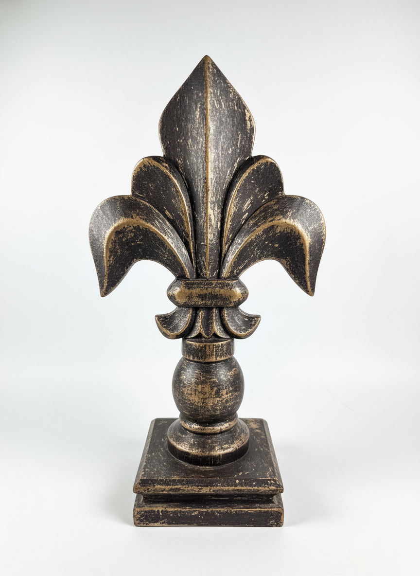 Its distinctive shape has made it a popular motif in art, architecture, and decorative objects throughout centuries. This particular piece, with its distressed finish and wooden construction, suggests a more modern interpretation of the classic symbol, likely intended for decorative purposes in home interiors. Such items often evoke a sense of history or a particular aesthetic, like rustic, vintage, or French country style, without being actual historical artifacts. The craftsmanship, while appearing aged, is likely contemporary, designed to mimic the patina of time.