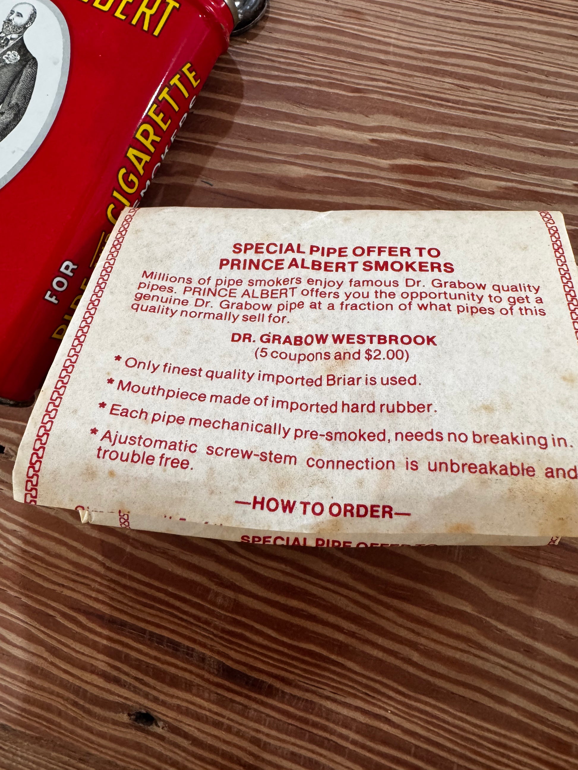 Prince Albert Tobacco Can with the paper liner and a touch of tobacco in it.