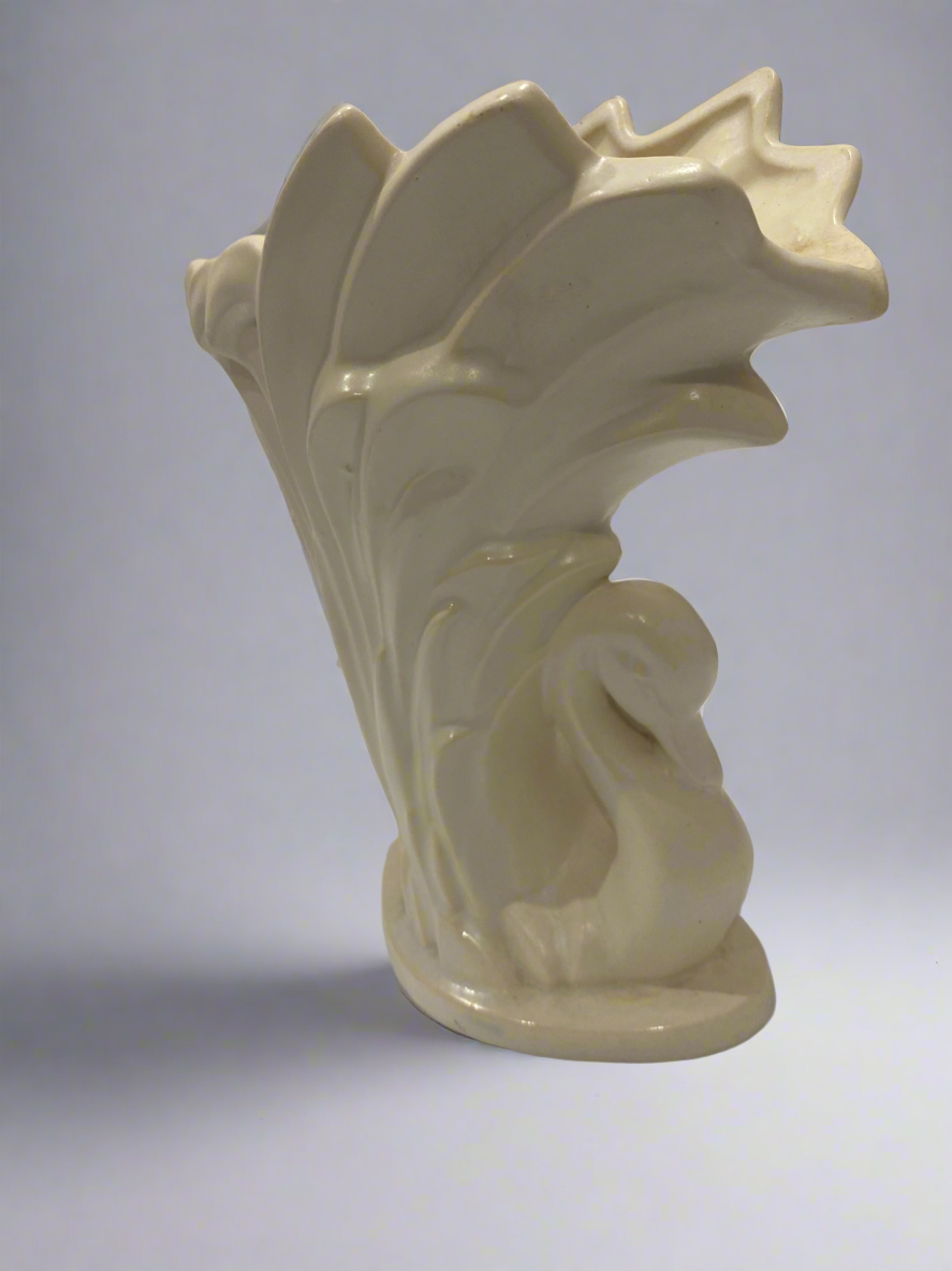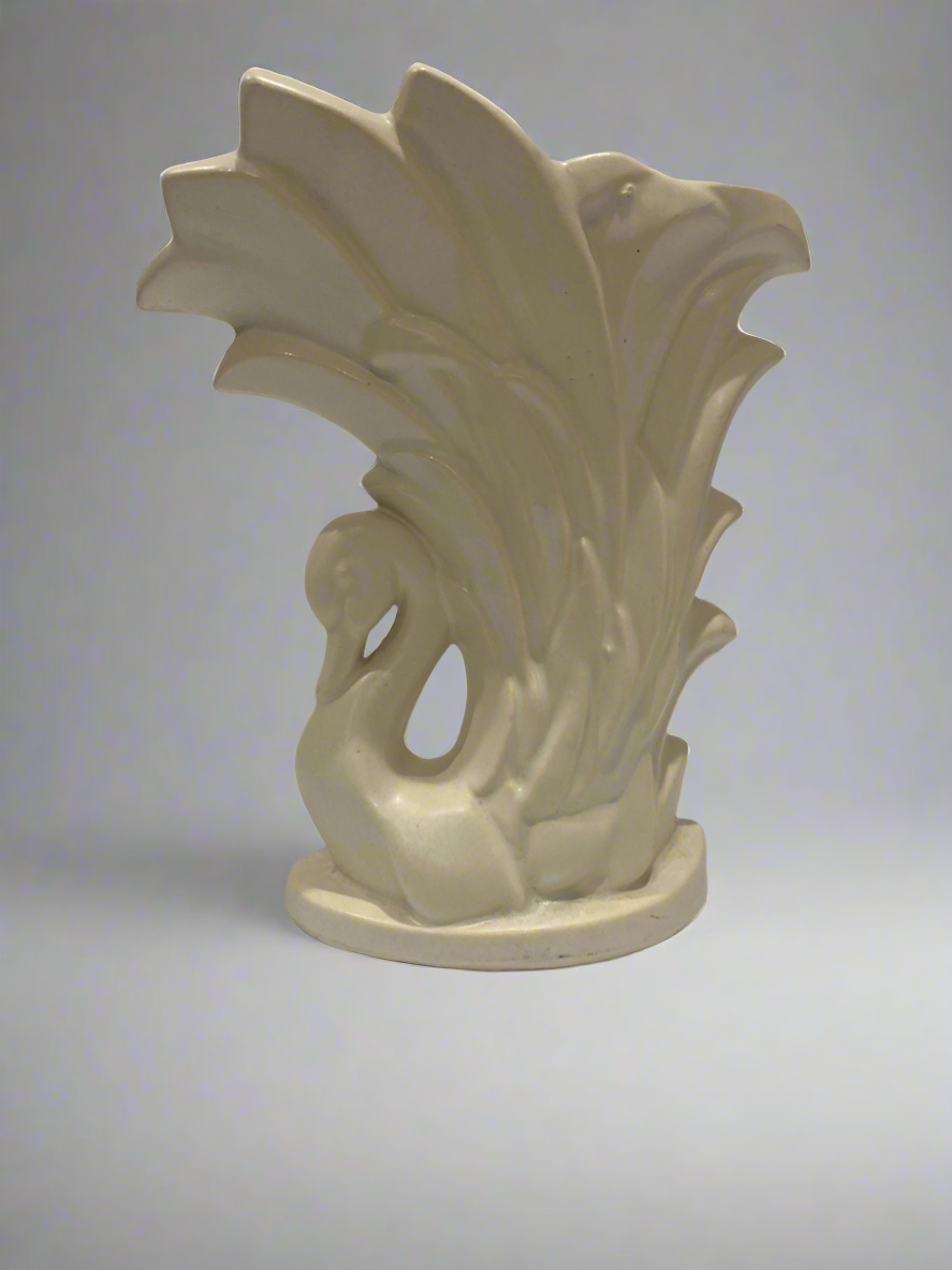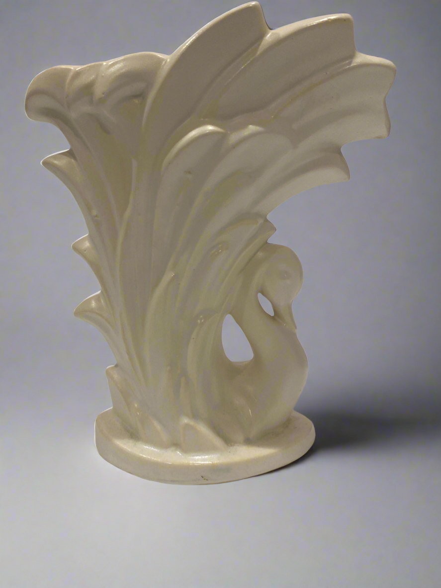 This vintage McCoy swan vase is a beautiful addition to any home decor. Made with expert craftsmanship and intricate details, this vase adds a touch of elegance to any room. Bring a touch of the past to your present with this stunning vintage piece