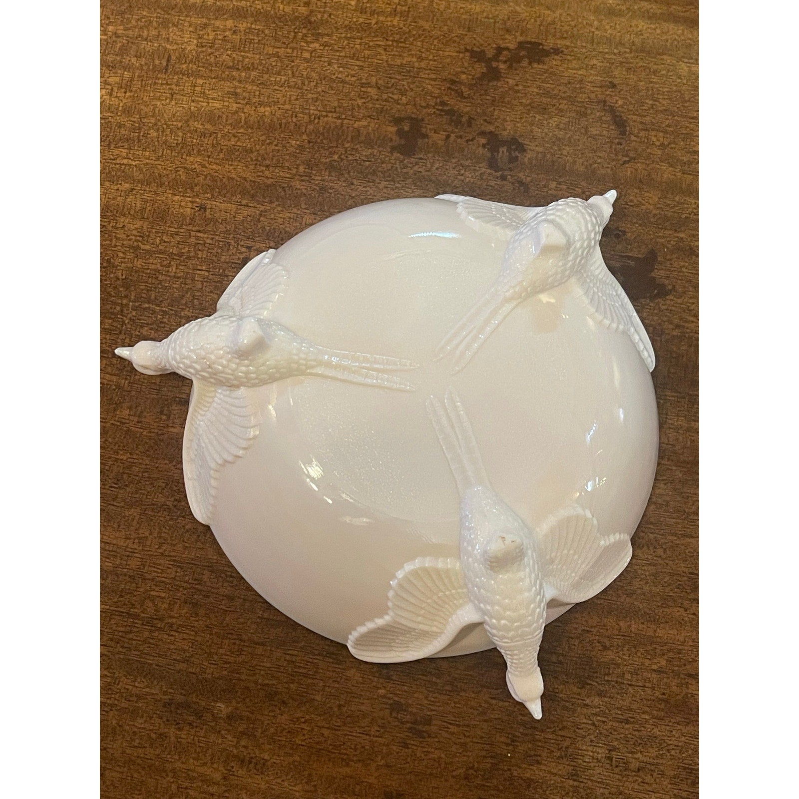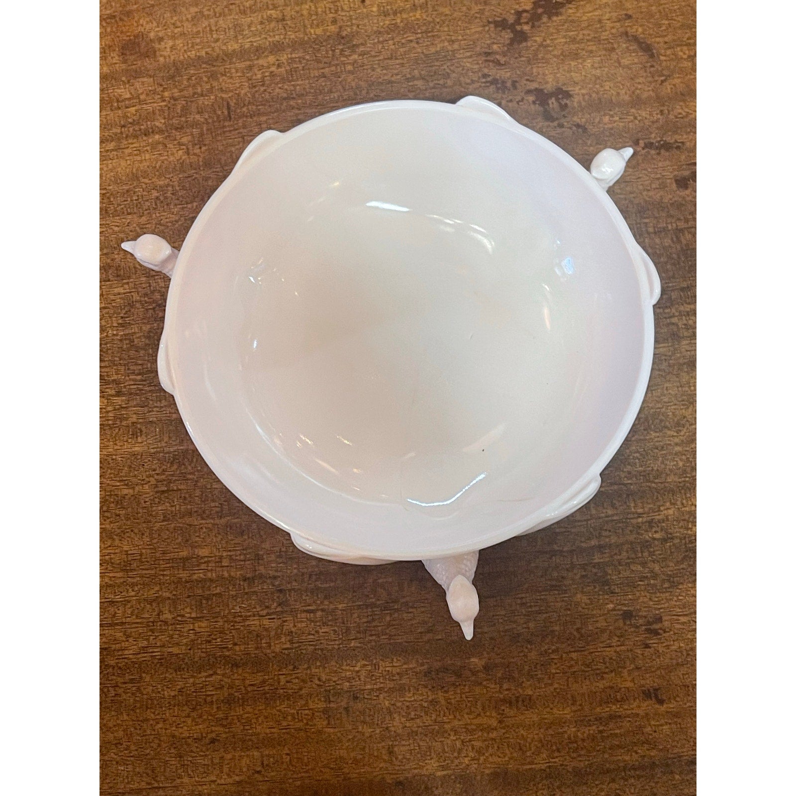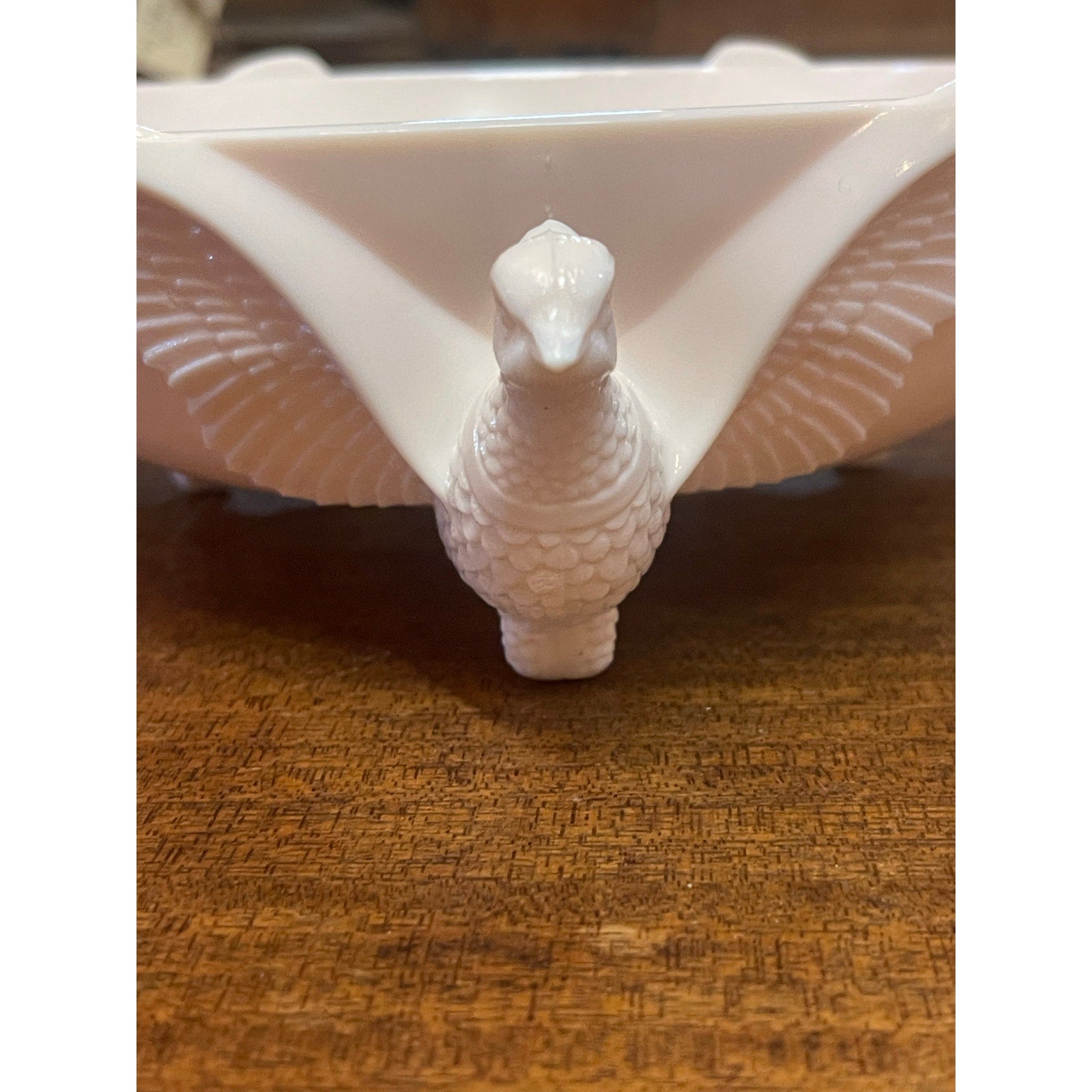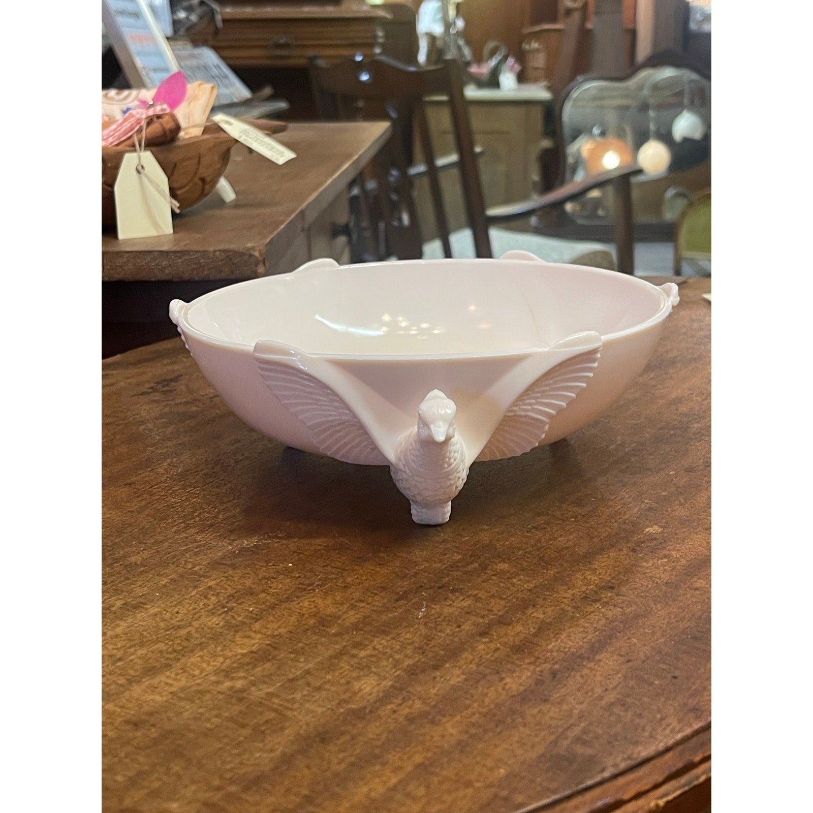 Vintage Jeannette Shell Pink Milk Glass 8" Footed Pheasant Bowl 3 Bird 1958-1959