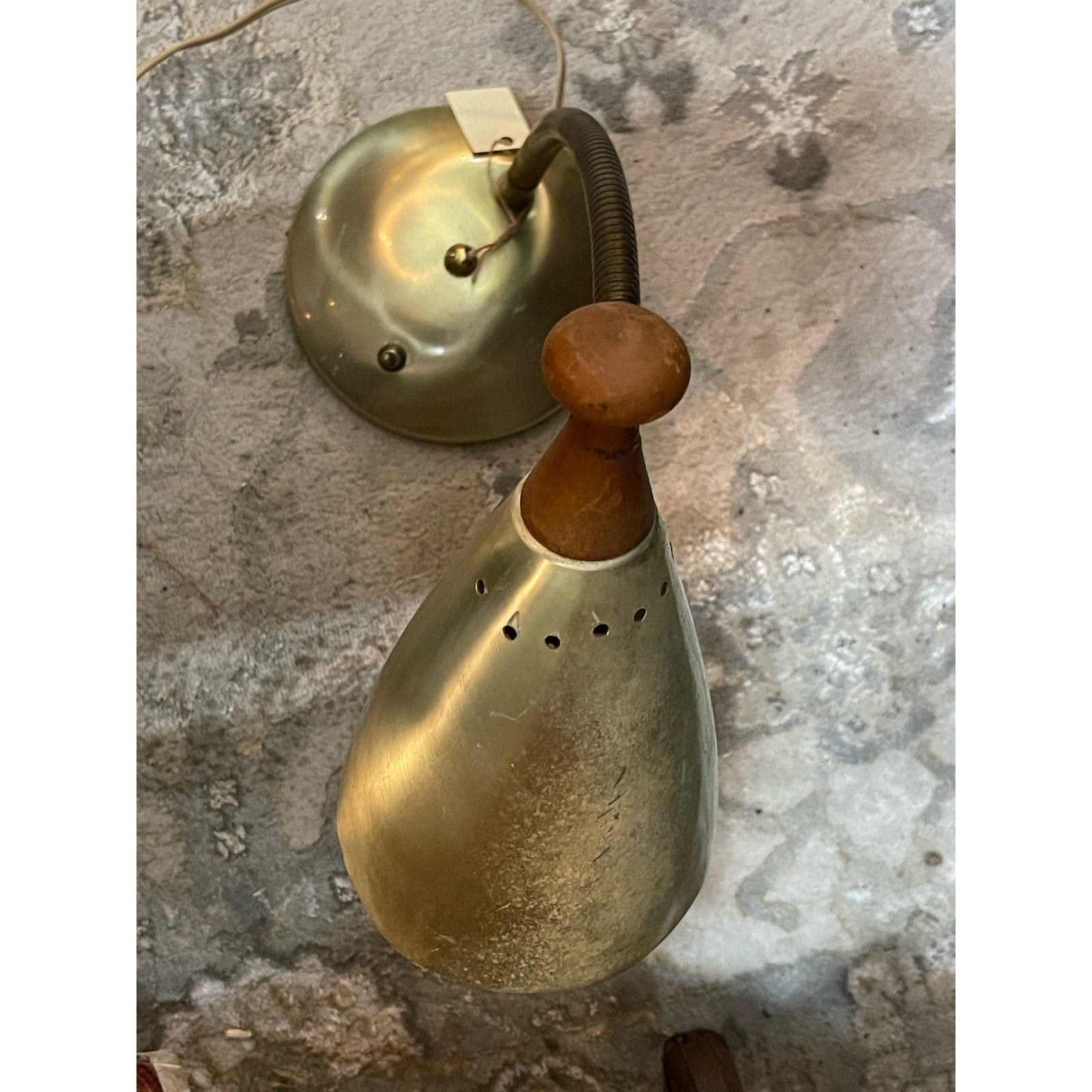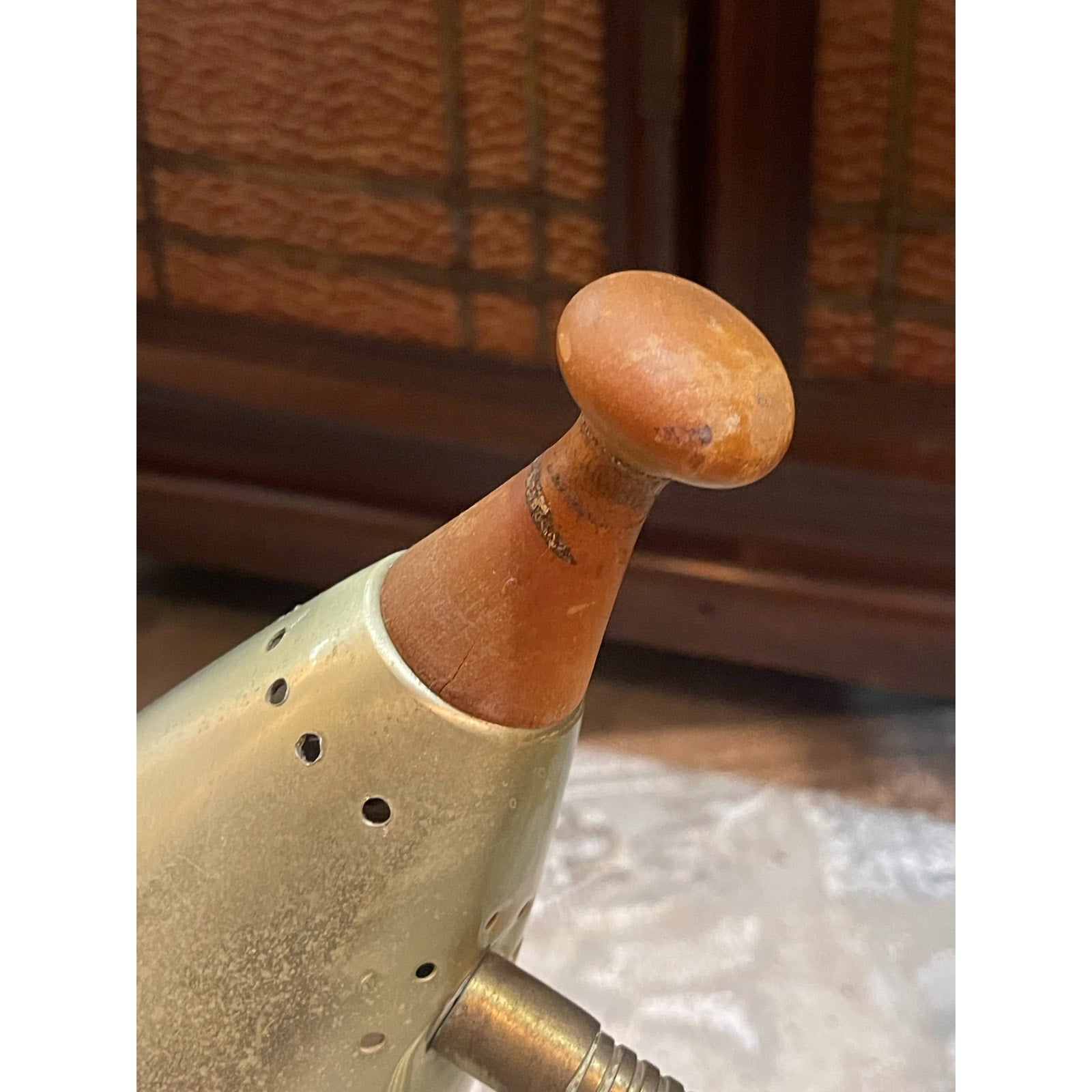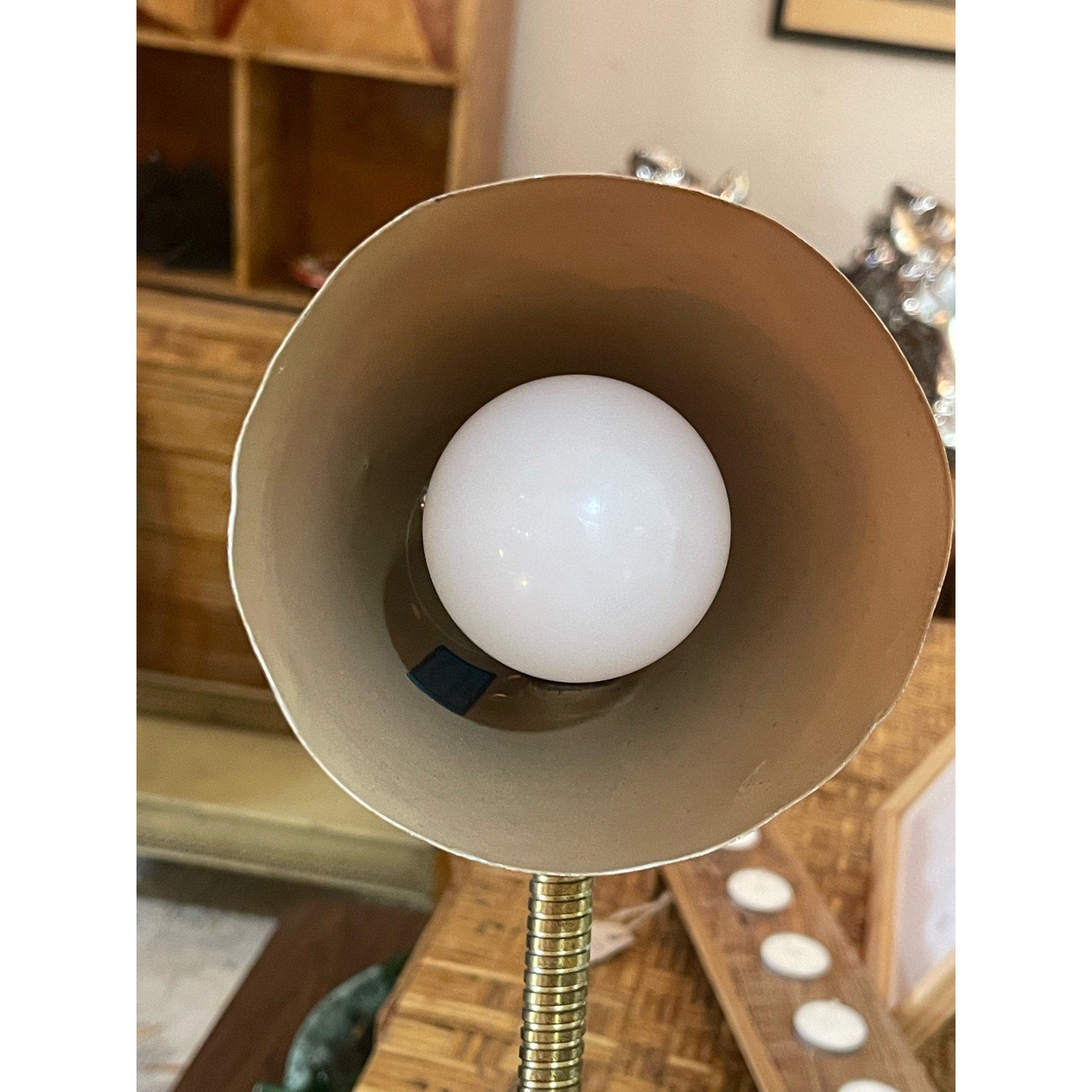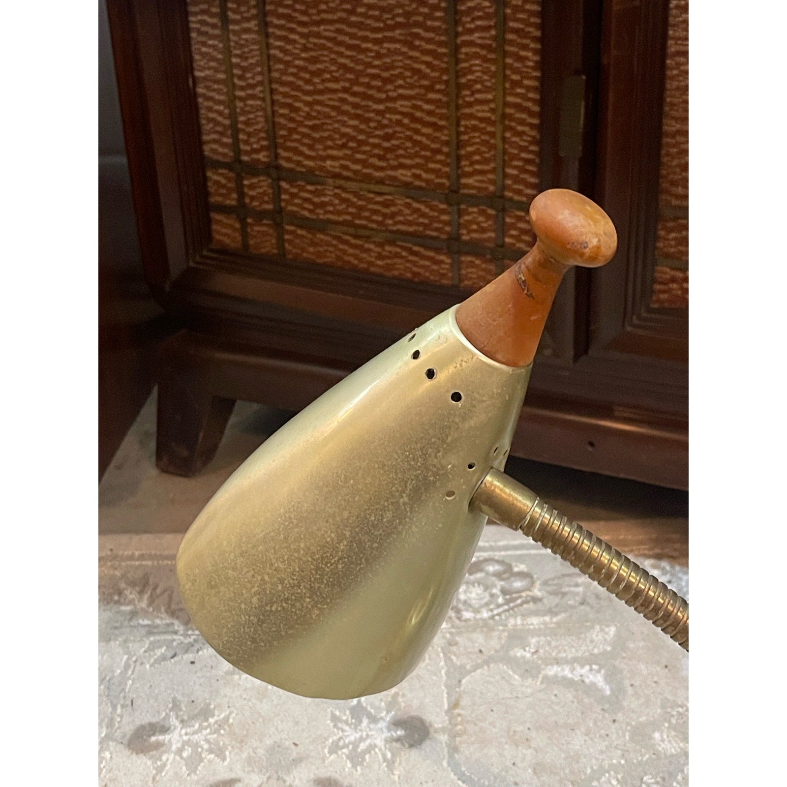Vintage MCM brass wood gooseneck plug in desk lamp light WORKS