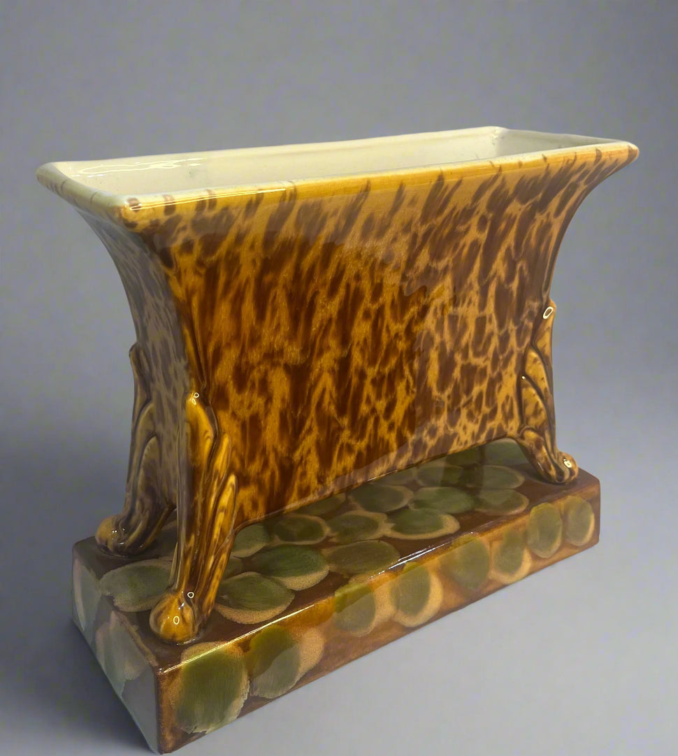 A vintage ceramic Royal Haeger Pottery Leopard print vase from the 1940s.