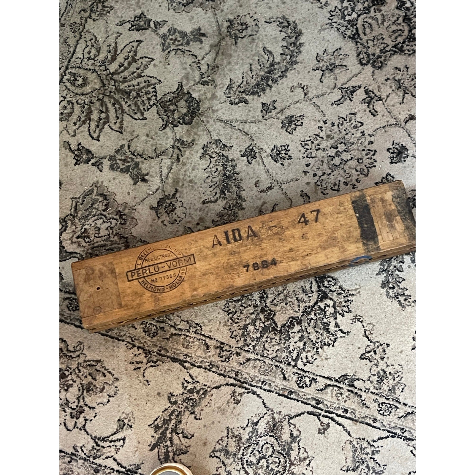 Vintage Perlu-Worm Helmond, Holland wooden distressed cigar mold