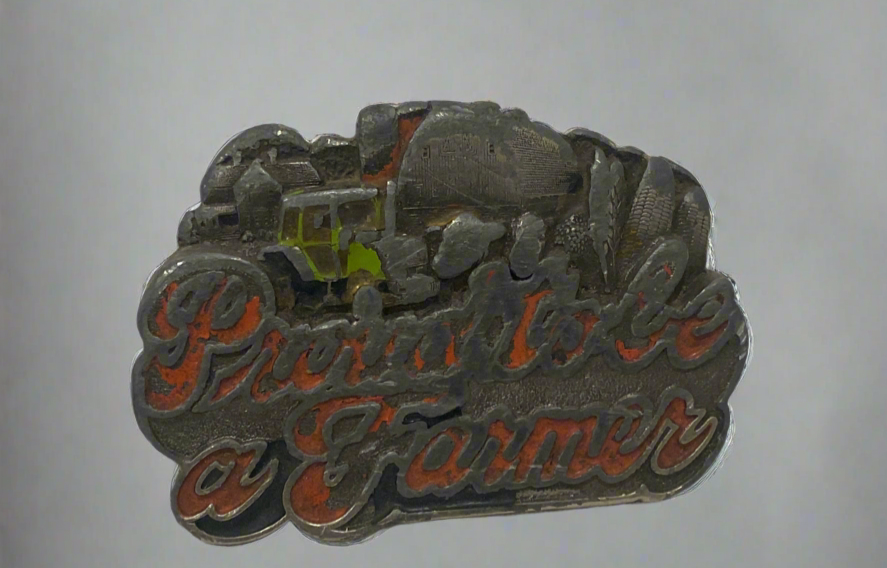 Vtg “proud to be a farmer” metal belt buckle