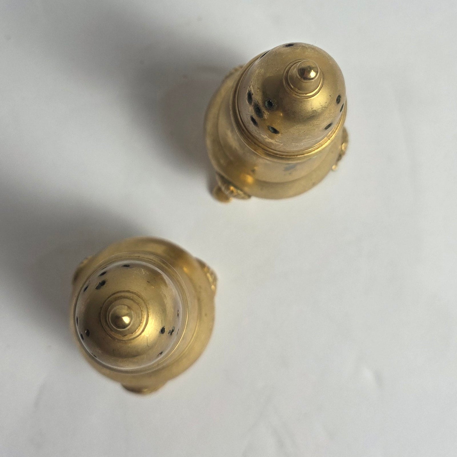 Vintage gold salt and pepper shakers, 24k gold tableware, mid-century salt and pepper set, gold footed shakers, antique table decor, collectible salt and pepper shakers, retro kitchen accessories, vintage dining accents, gilded salt and pepper shakers, elegant vintage home decor