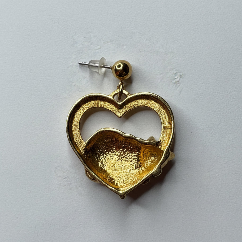 Vintage Avon Gold-Tone Cat in Heart Dangle Earrings – Retro Feline Jewelry