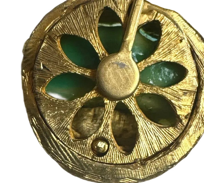 • Condition: Excellent vintage condition. The gold plating is vibrant with no significant wear, and all mechanisms (pin and earring clips) are secure and functional.