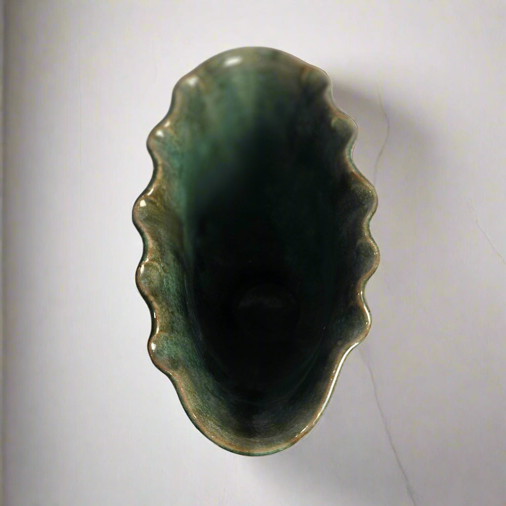 vintage Carolina Pottery vase, green ceramic vase, pedestal vase, fluted edge vase, mid-century pottery, southern art pottery, vintage home décor, collectible ceramic vase, Carolina Pottery collectible, farmhouse ceramic vase