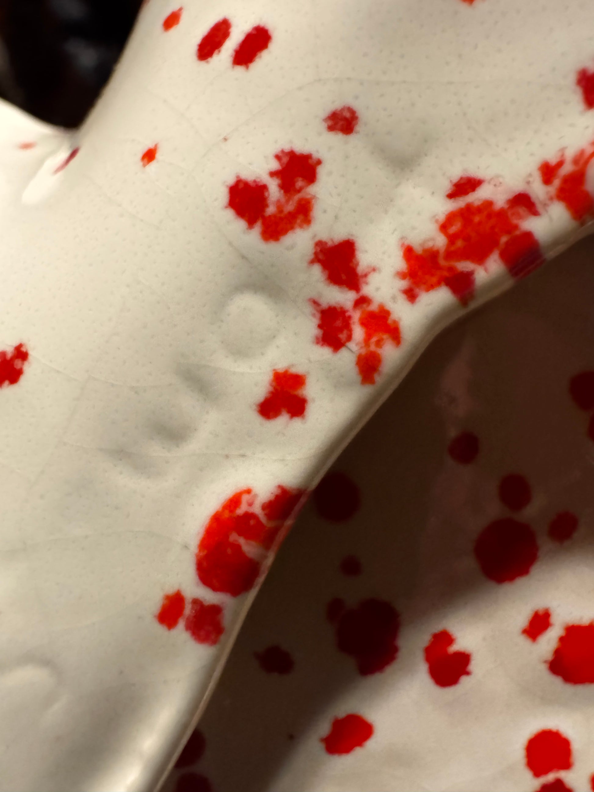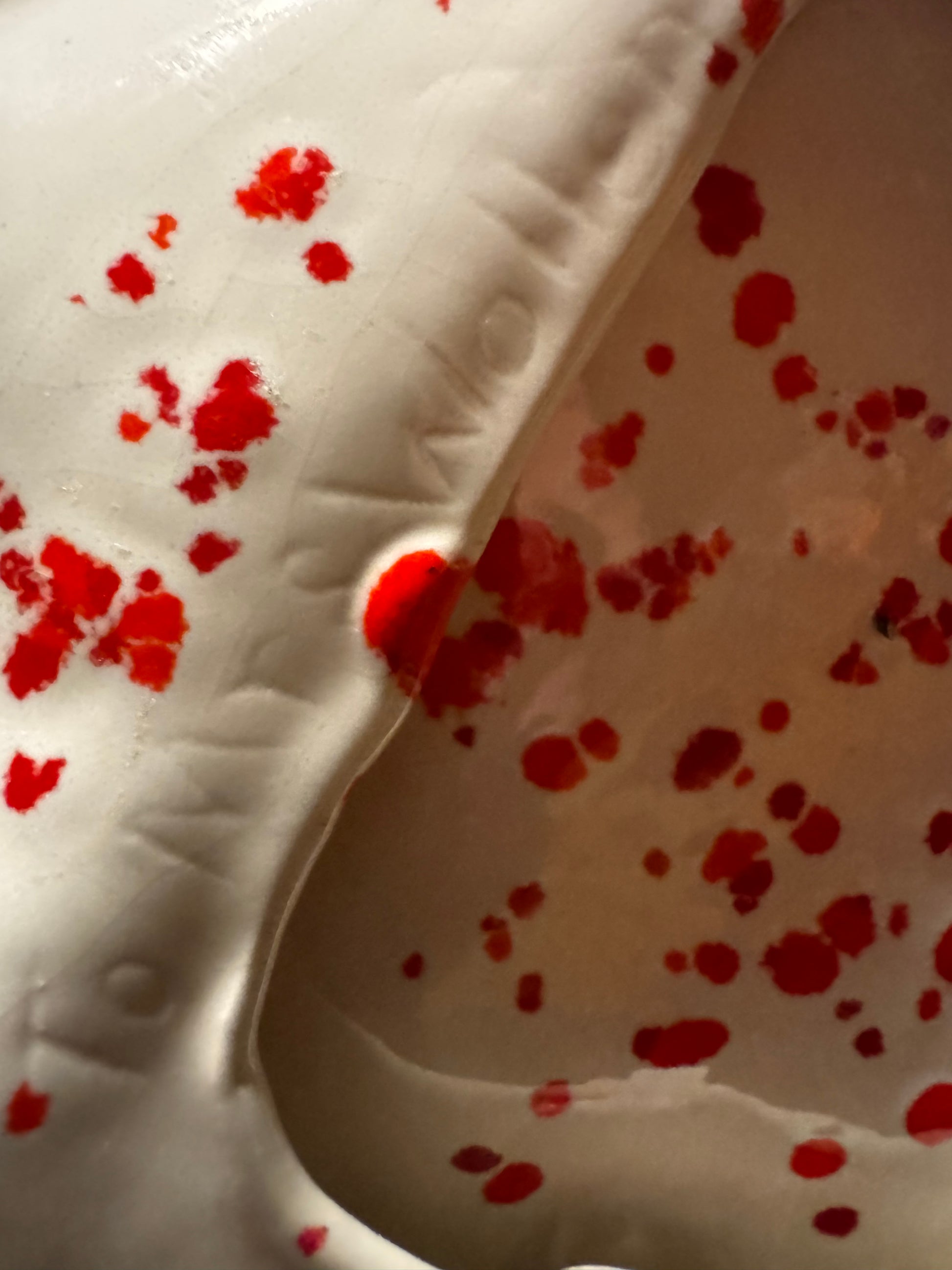 Vintage Red Speckled Ceramic Christmas Tree Dish/Platter. This charming ceramic piece is perfect for holiday entertaining, holding cookies, candy, or using as a decorative trinket dish. It features a bright white glaze heavily speckled with festive red. This style is often associated with Mid-Century Modern (MCM) or pieces made from Atlantic Moldsin the 1970s. The platter is in excellent vintage condition with the slight, natural crazing (fine lines in the glaze) common in older ceramics, adding to its authentic character. It makes a wonderful, nostalgic gift or a great addition to your retro Christmas decor.