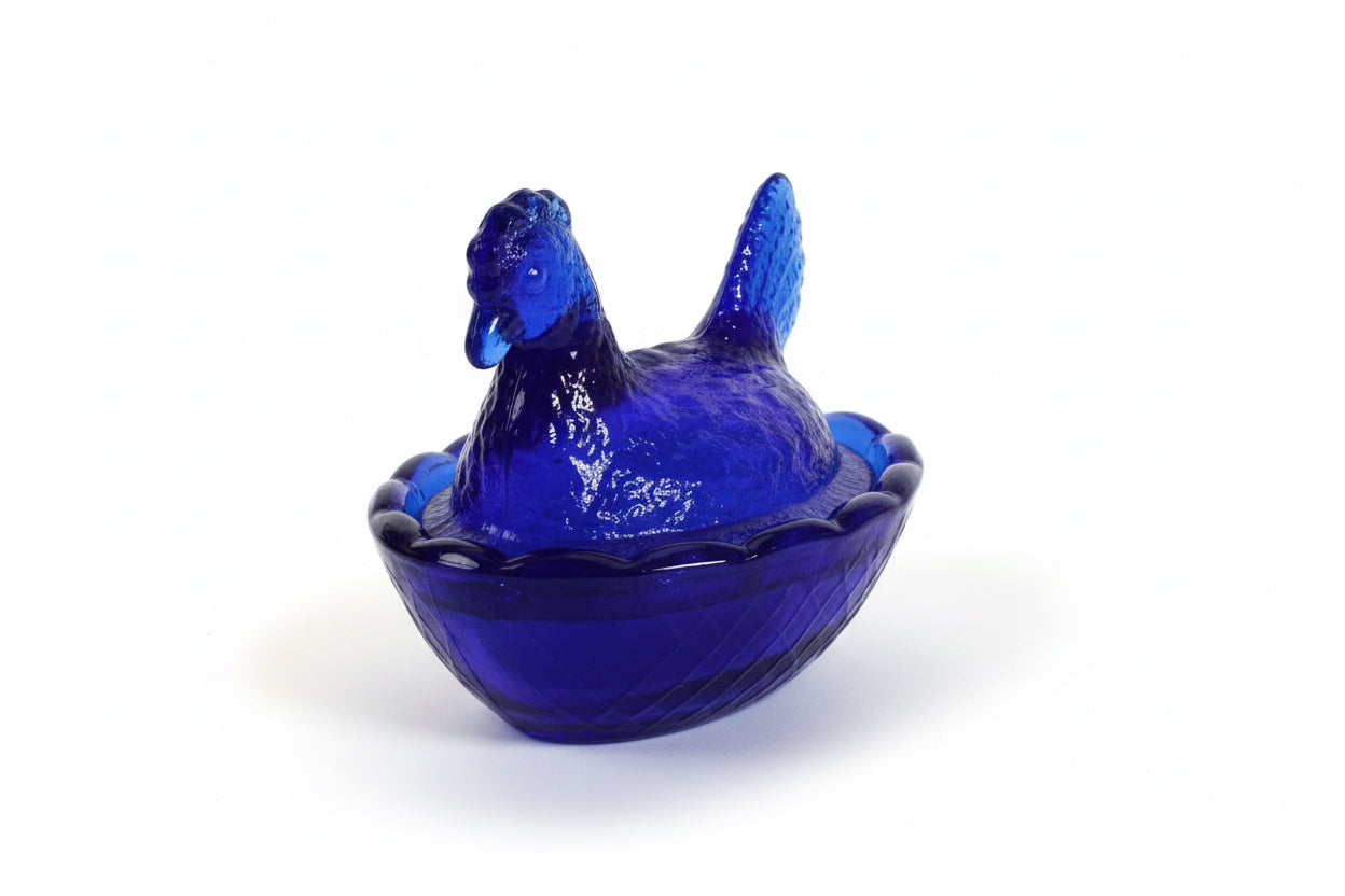 Title: Vintage Cobalt Blue Glass Hen on Nest – Mini