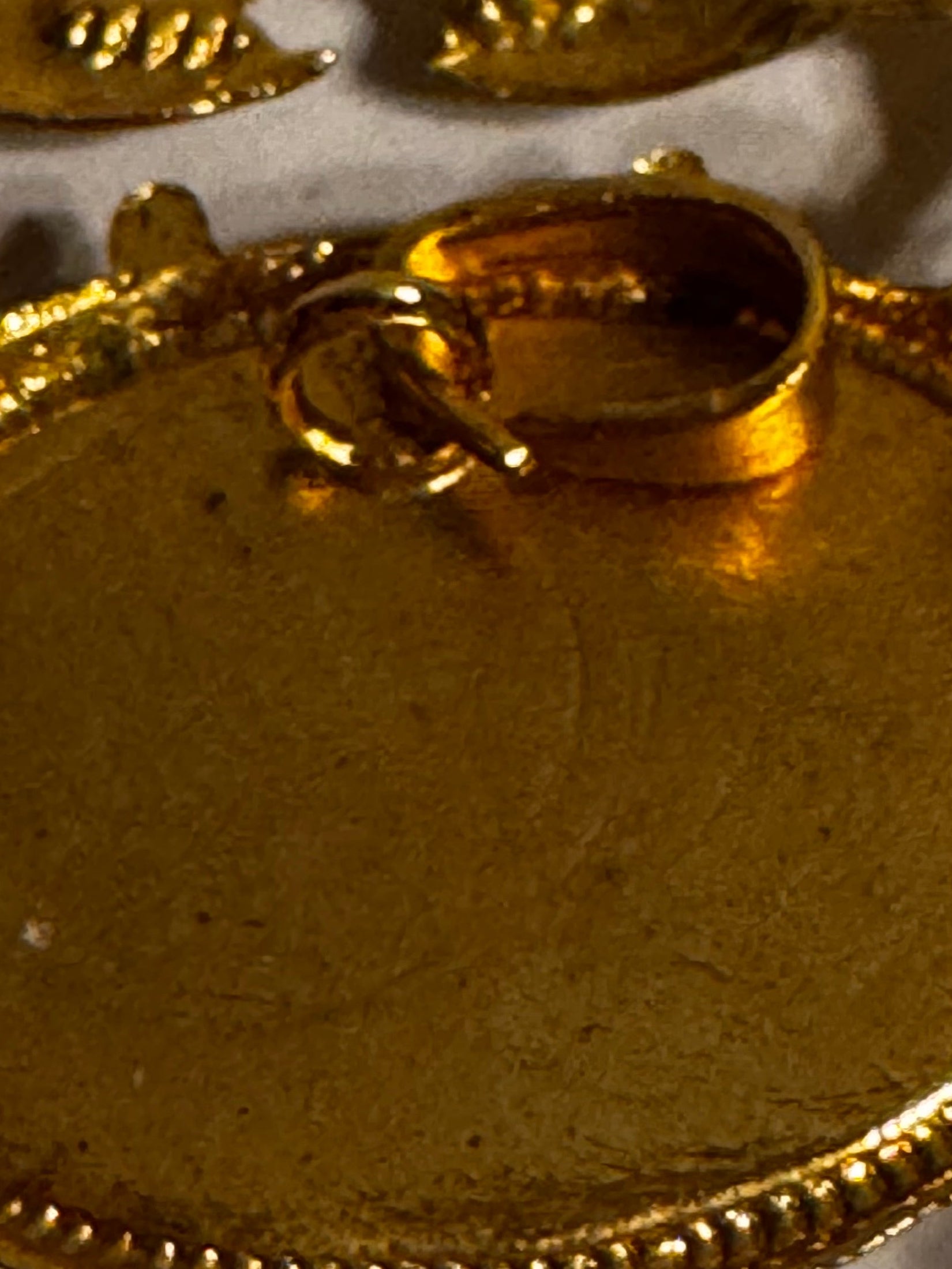 Vintage gold-tone crab brooch featuring a large dark green oval cabochon center. This figural costume jewelry piece is convertible, designed with both a locking pin clasp and a bail loop so it can be worn as a brooch or a pendant on a necklace. The metal has a textured finish on the claws and legs. Unmarked/unsigned. A great piece for nautical themes, ocean lovers, or the Cancer zodiac sign.