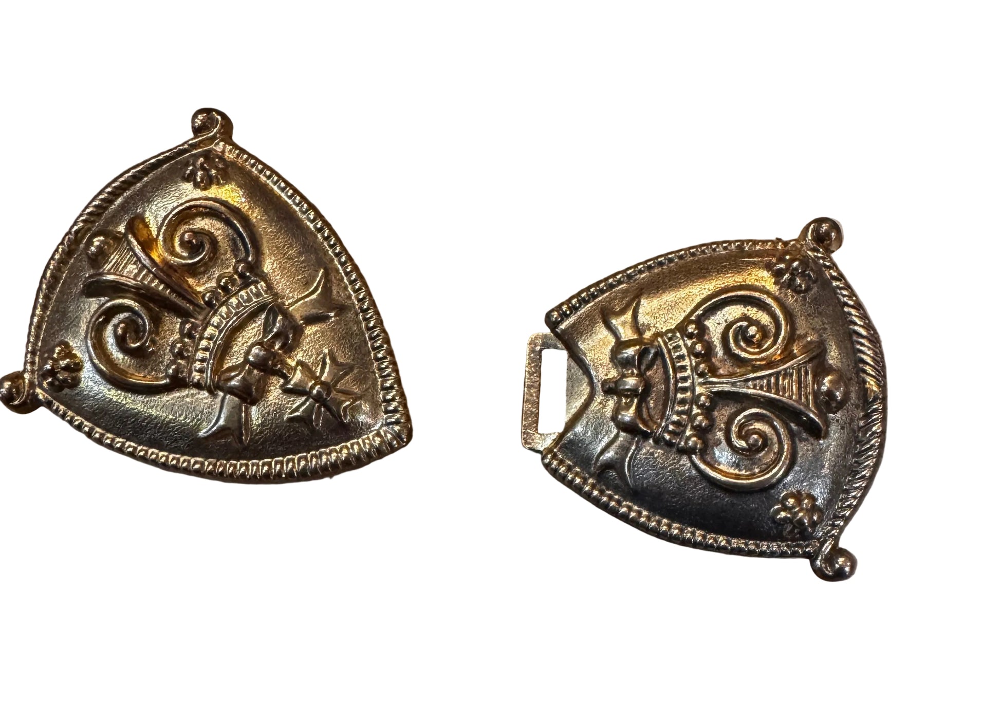 Vintage Gold Tone Fleur de Lis Interlocking Sash Belt Buckle
