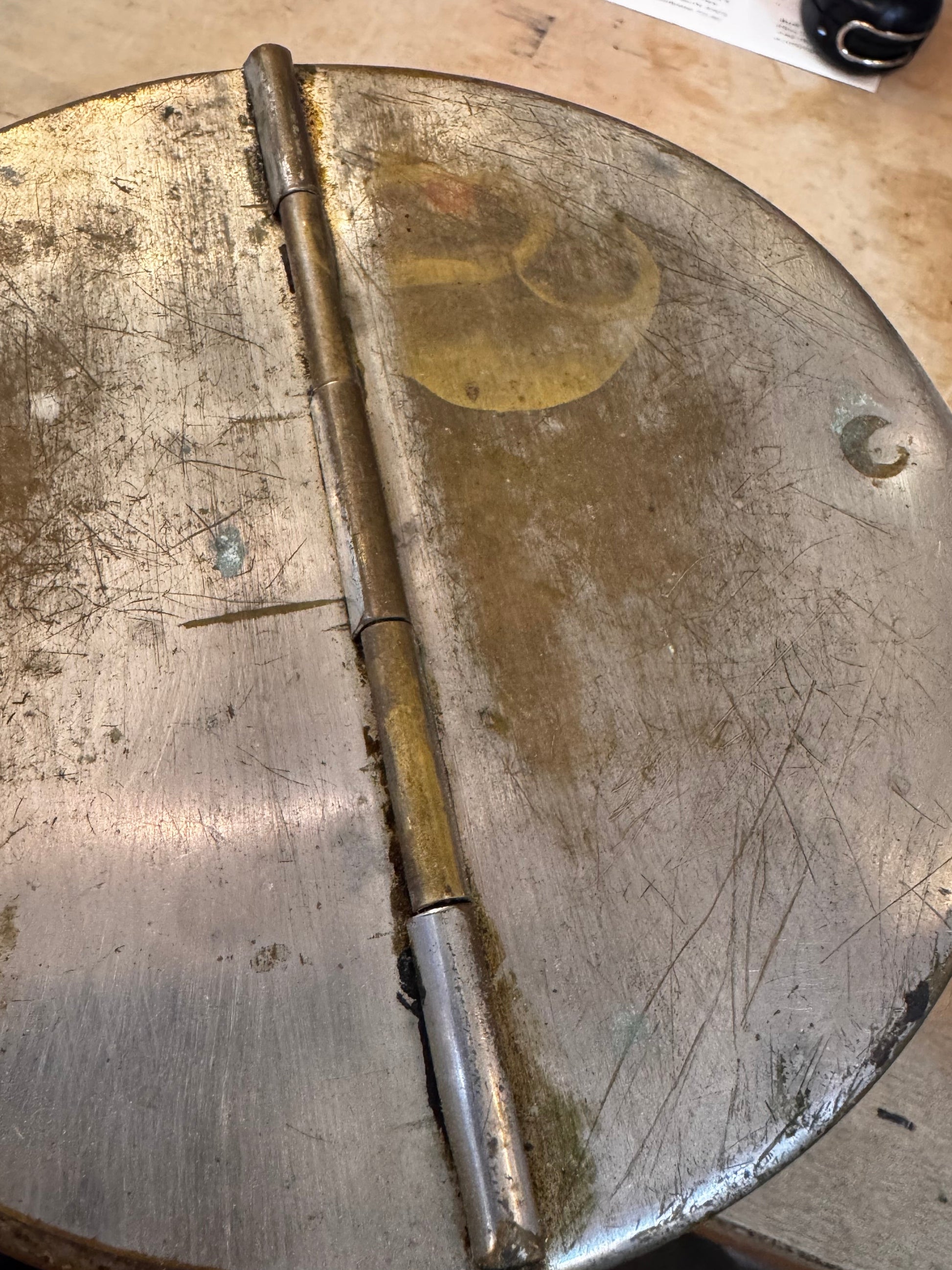 Authentic mid-century restaurant ware from the classic American diner era, made by Utilities Specialties Co. Inc., Jersey City, NJ. This heavy ceramic bowl features a maroon/dark red stripe and a metal hinged flip-top lid. Great for sugar, jam, or as a display piece. Bowl is in excellent vintage condition; lid shows heavy patina and scratching consistent with age and diner use.