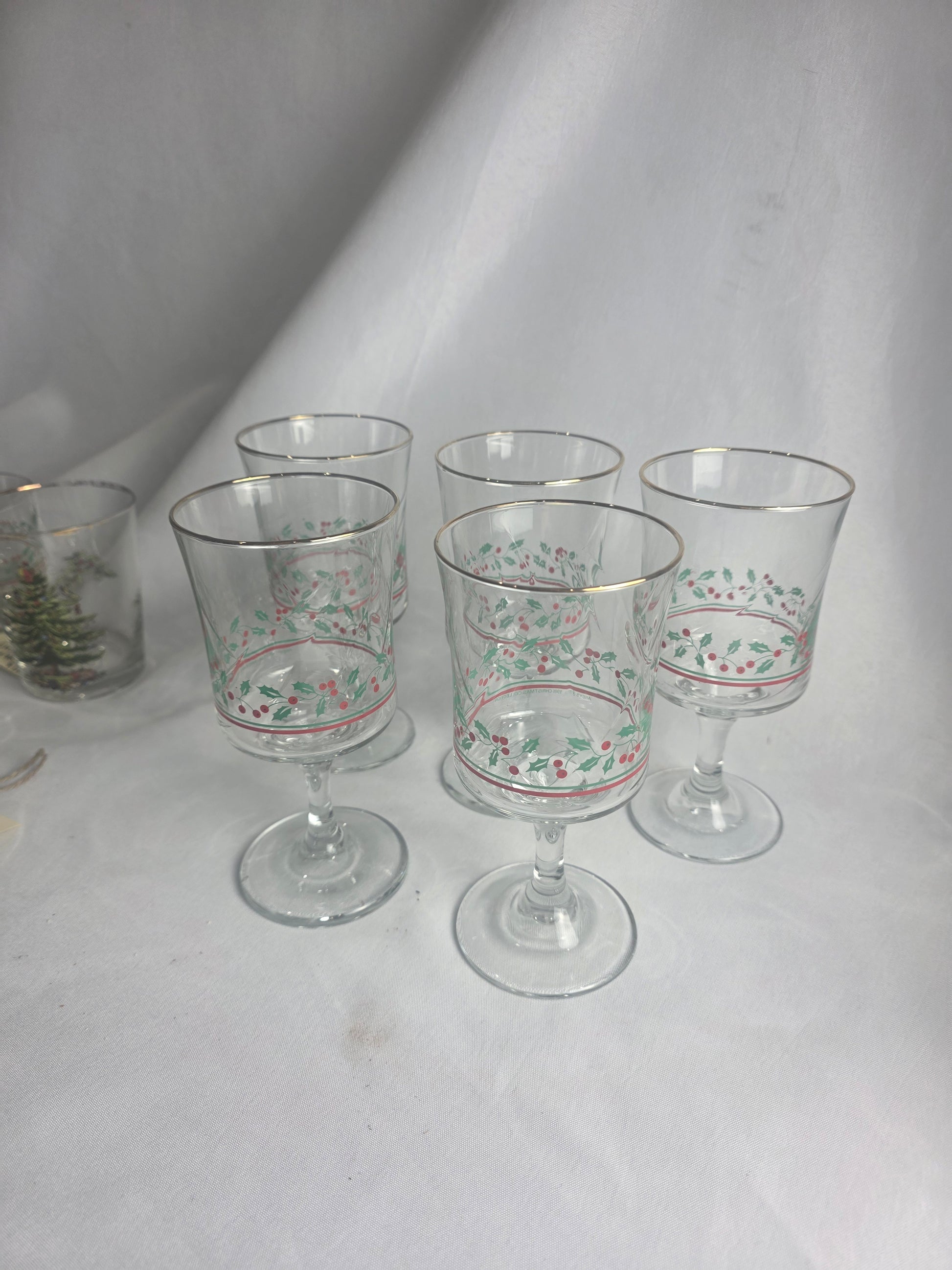 Vintage Christmas Glasses • Holly Berry Stemware • Gold Rim Wine Glasses • Holiday Barware • Festive Drinkware • Retro Holiday Décor • Cottage Core Christmas • Traditional Christmas Table • Winter Entertaining Glasses • Holiday Cocktail Glasses • Vintage Wine Goblets